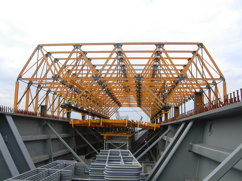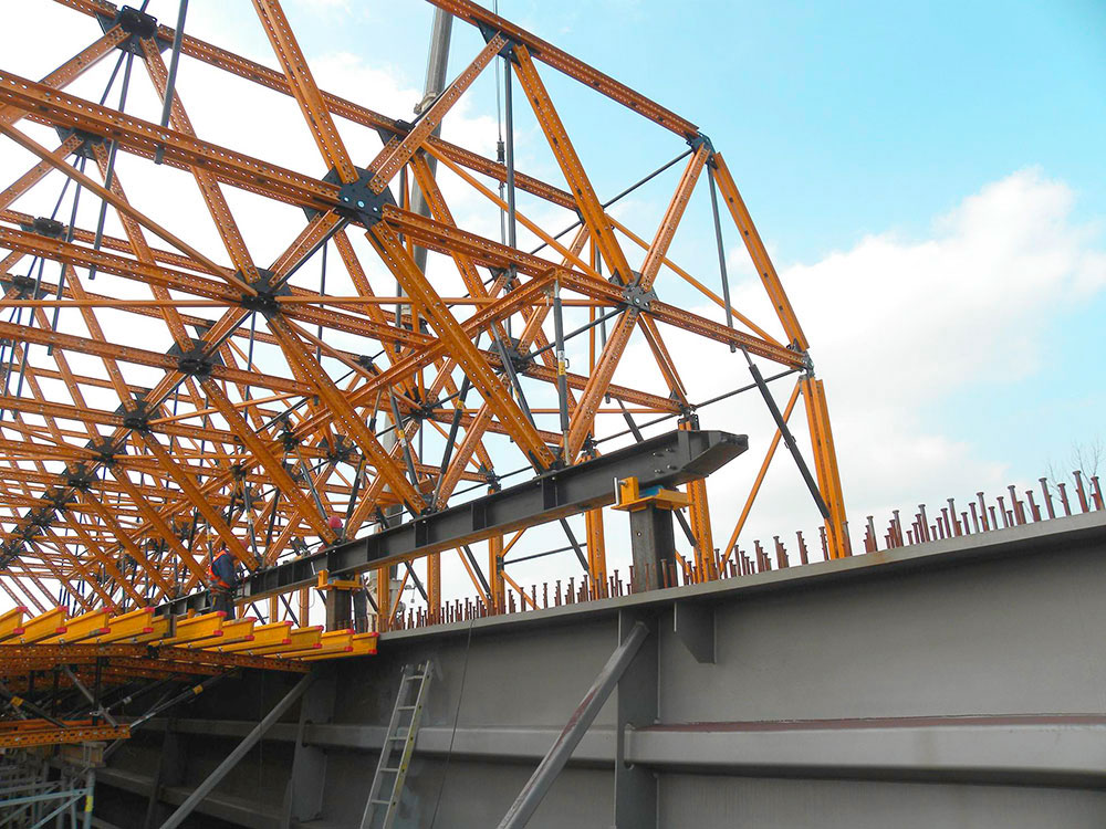 Wózek przejezdny MK to uniwersalny i wydajny system deskowań służący głównie do budowy mostów zespolonych lub częściowo prefabrykowanych, w których zachodzi potrzeba wykonania betonowych wsporników płyty pomostu (mostu).