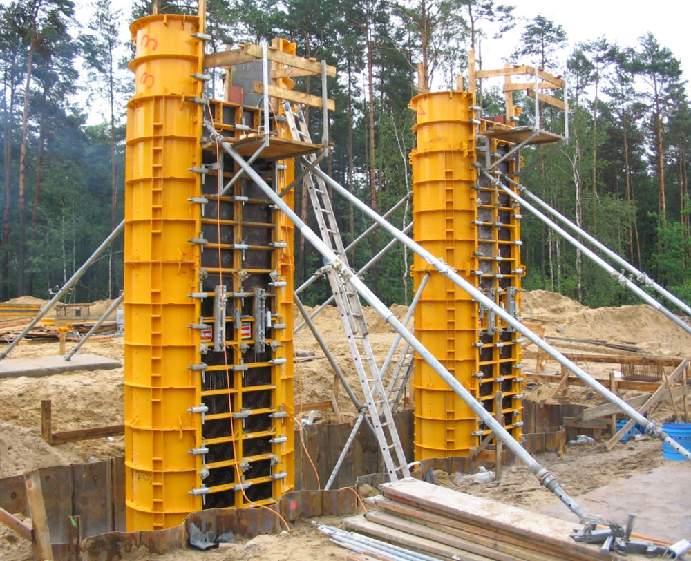System form stalowych do realizacji okrągłych słupów żelbetowych o średnicach od 30 do 120 cm, z gradacją co 5 cm.