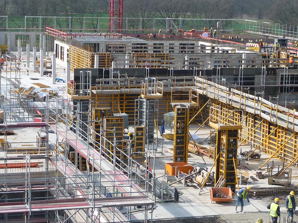 - Bezpieczeństwo: prosty montaż podestów uniwersalnych do deskowań oraz systemu drabin do komunikacji pionowej.
