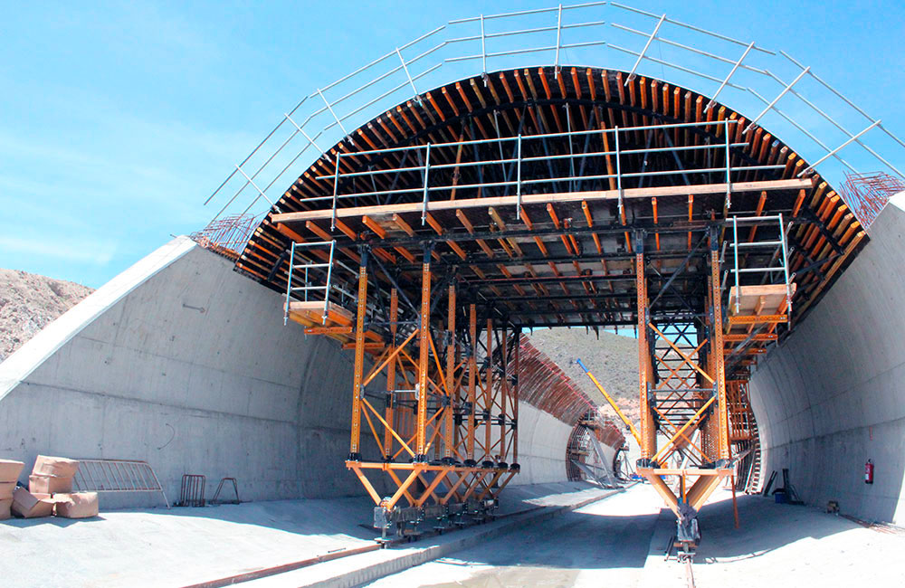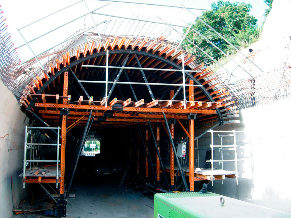 Wózek do budowy tuneli to deskowanie przejezdne do realizacji obiektów podziemnych metodą odkrywkową, które składa się z konstrukcji nośnej i deskowania kształtującego sklepienie tunelu.
