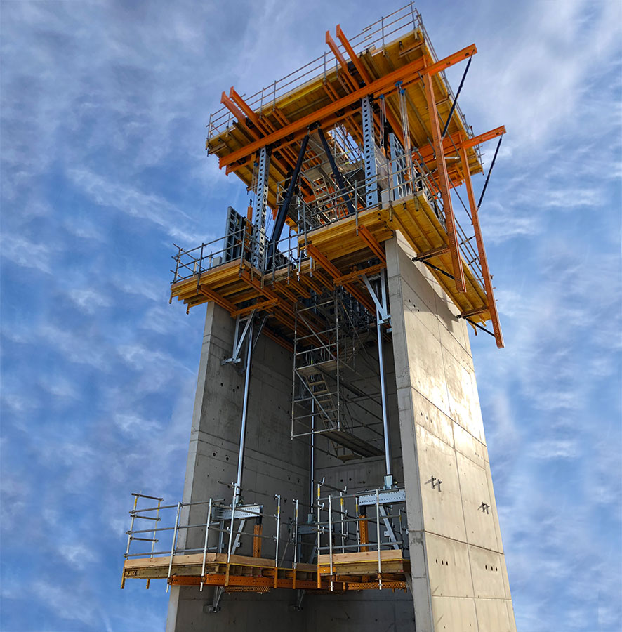 - Rozwiązanie zaprojektowane na bazie uniwersalnego systemu MK pozwala na dostosowanie konstrukcji deskowania do geometrii trzonu oraz wymaganej wysokości wykonywanego taktu.