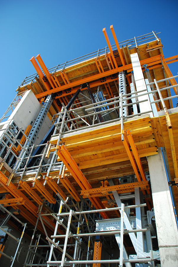 - Możliwość zastosowania systemu przy różnych metodach wnoszenia budynków wysokich. Deskowanie znajduje zastosowanie zarówno podczas realizacji trzonów z wyprzedzeniem, jak i przy jednoczesnym wykonywaniu ścian i stropów.