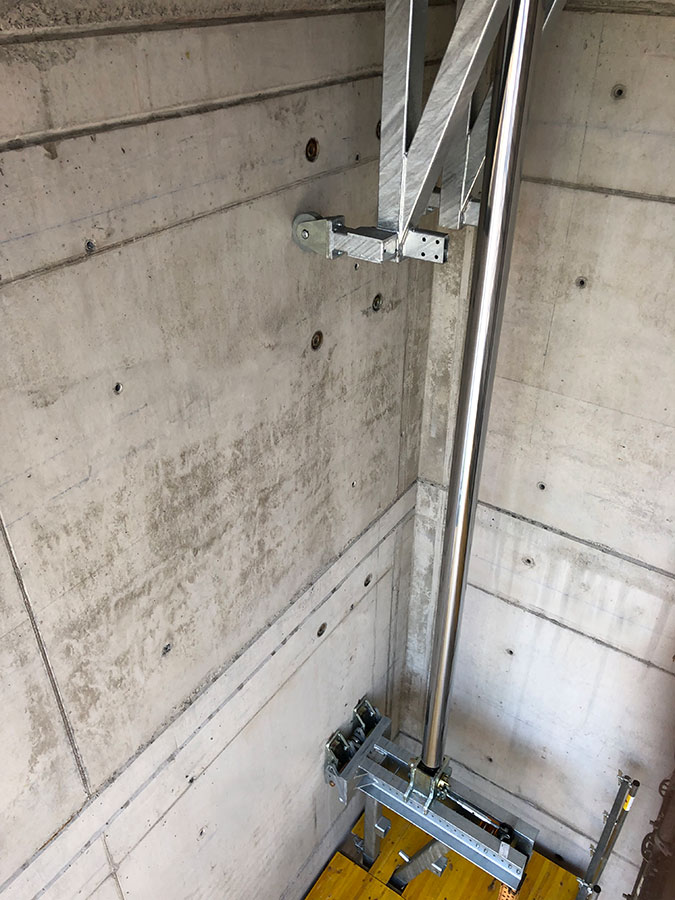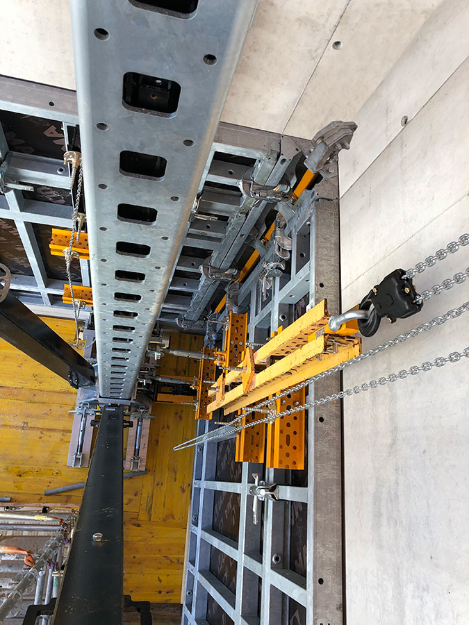 Cała konstrukcja deskowania podnoszona jest podczas jednego skoku siłownika bez konieczności stosowania żadnych dodatkowych masztów prowadzących. System pozostaje zakotwiony podczas wznoszenia na ścianach wykonanych w poprzednim etapie.