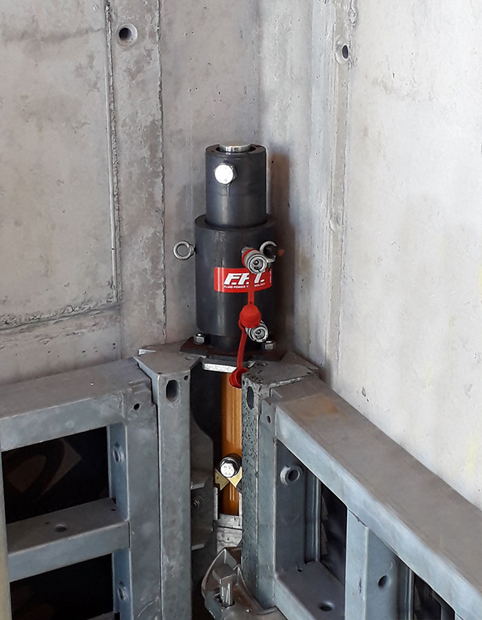 - Szybkie rozszalowanie konstrukcji dzięki narożnikom rozformowującym obsługiwanym za pomocą układu hydraulicznego.