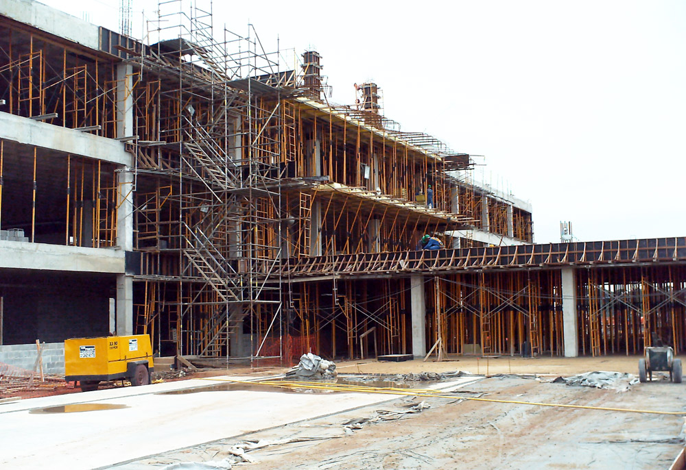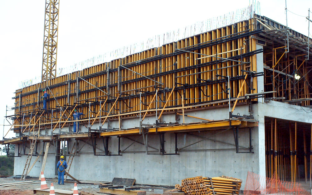 Słupy, ściany wewnętrzne, fundamenty i wsporniki konstrukcji żelbetowych wykonano w systemie lekkiego deskowania ramowego COMAIN, co znacznie usprawniło przebieg prac.
