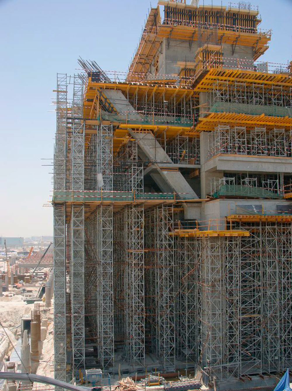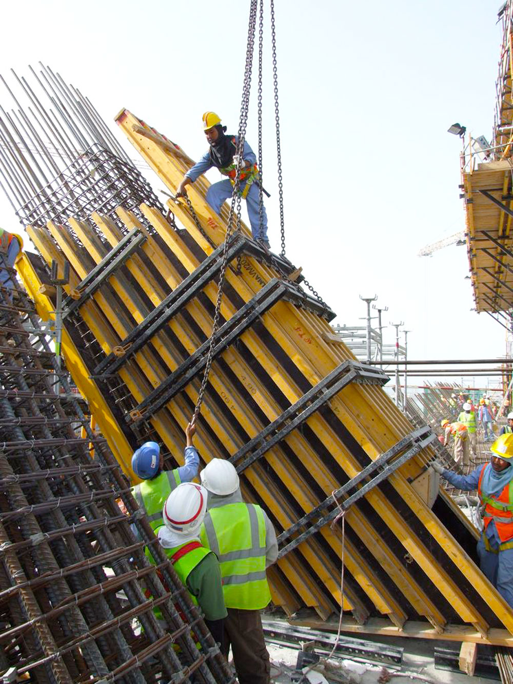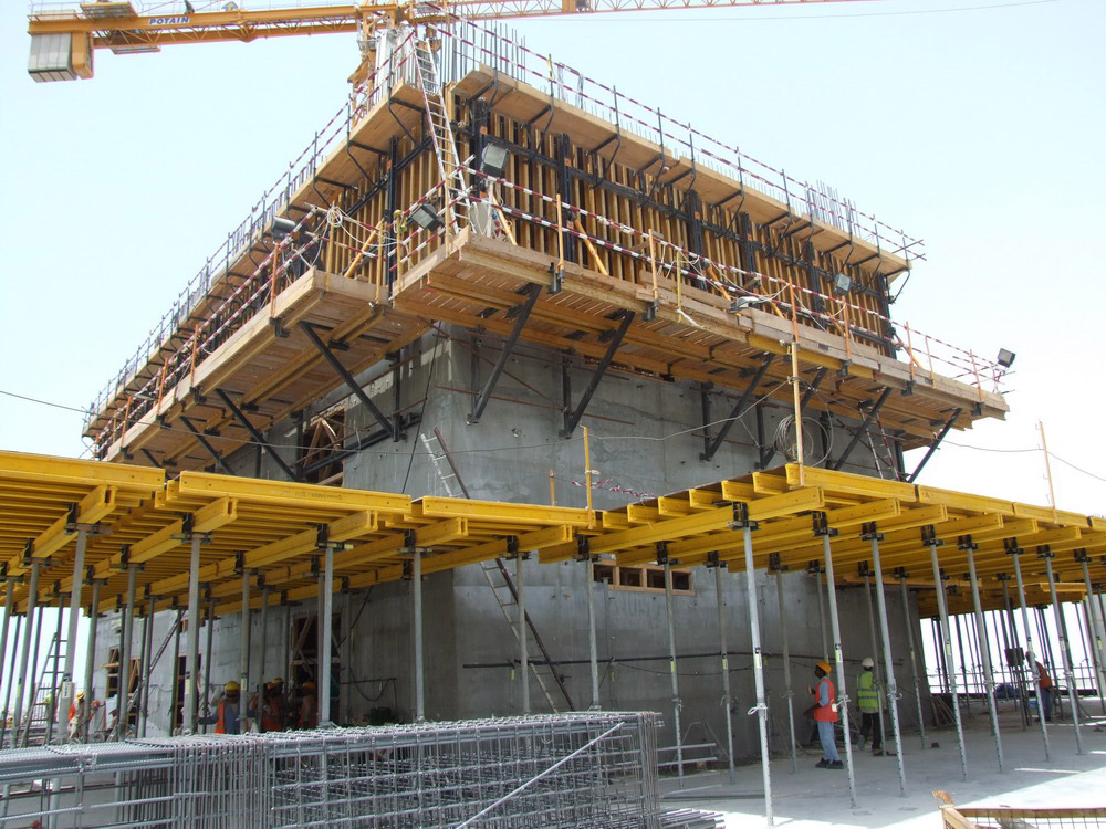 Stropy żelbetowe o grubości do 45 cm wykonywano za pomocą podpór EP i wież T-60. Wysokość wieżowców oraz skomplikowana geometria ich ścian wymagały specjalnych rozwiązań. W tym celu zespół inżynierów przygotował odpowiedni rozkład obciążeń z zastosowaniem wież T-60, które osiągały wysokość do 45 m.
