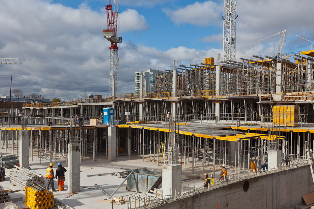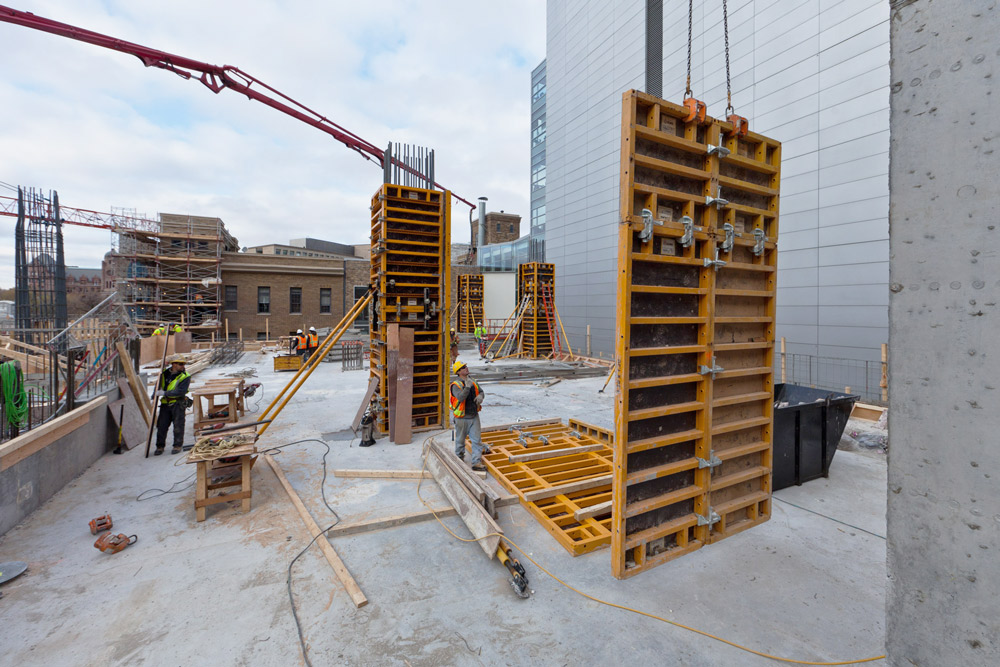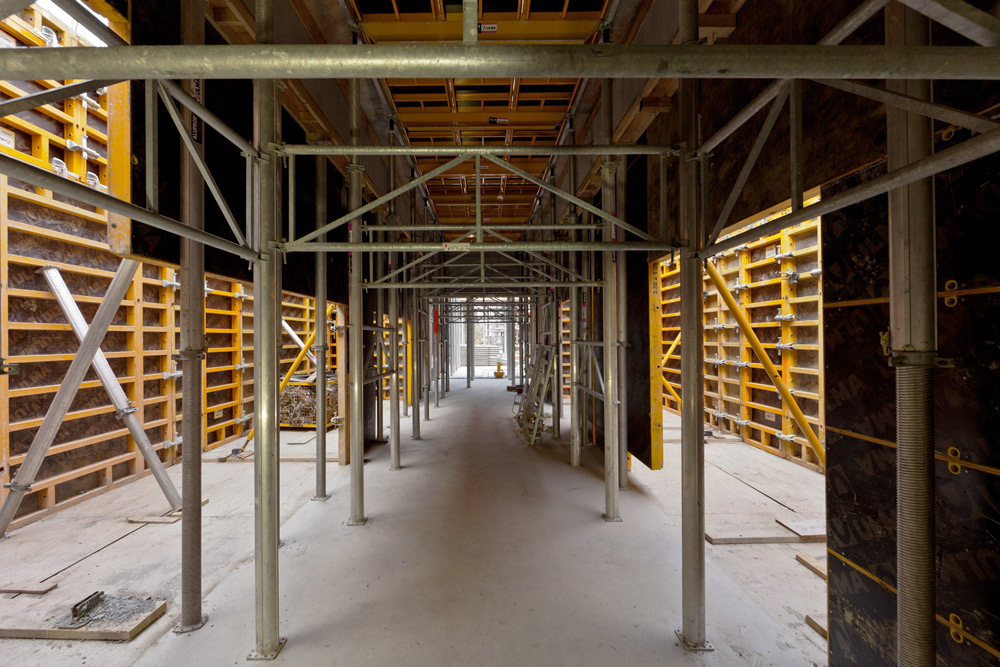 Do realizacji rdzenia obiektu wykorzystano deskowanie pionowe ORMA z narożnikami rozformowującymi, co znacznie usprawniło demontaż oraz ponowny montaż deskowania w szachtach windowych. Ściany wykonano za pomocą lekkiego deskowania do montażu ręcznego MEGALITE.