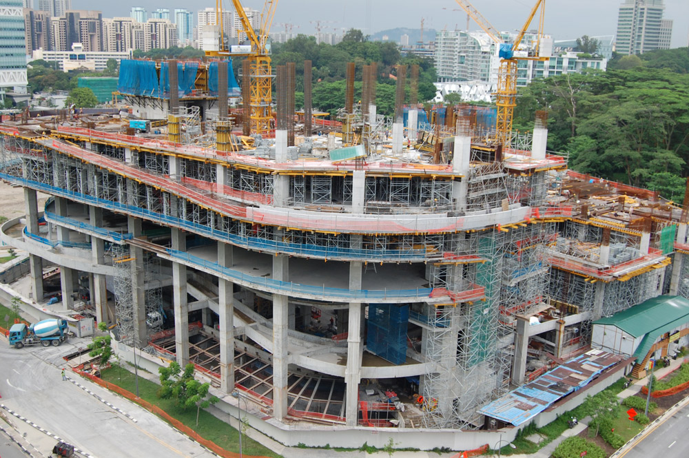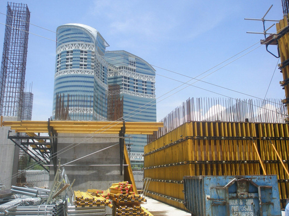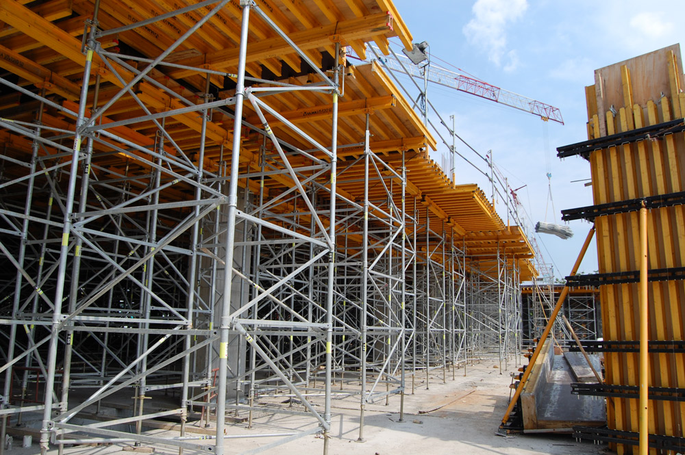Stropy oraz belki podwieszane na typowym stropie wykonano w systemie stolików VR i podpór EP, umożliwiających dopasowanie się do wysokości każdej kondygnacji. Stoliki VR pozwoliły na szybki montaż przy przenoszeniu ich na kolejne takty. Na pierwszych trzech kondygnacjach, o wysokości 11 m każda, zastosowano stoliki VR wraz z wieżami T-60 i deskowanie dźwigarkowe ENKOFLEX.
