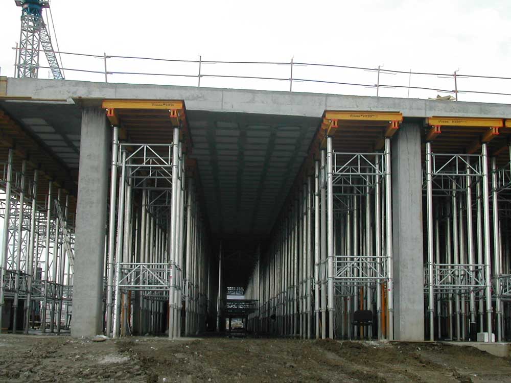 Budynek składa się z dwóch kondygnacji wykonanych w technologii monolitycznej oraz jednej o konstrukcji stalowej. Na parterze wykonano strop gęstożebrowy z kasetonami o wymiarach 82x82 cm i żebrach o szerokości 14 cm. Strop o grubości 40+7 cm i całkowitej powierzchni 120.000 m2 wykonano na wysokości 4 m. Strop na wyższej kondygnacji realizowano na wysokościach 5,78 oraz 4,83 m. Jego całkowita powierzchnia wyniosła 85.000 m2.
