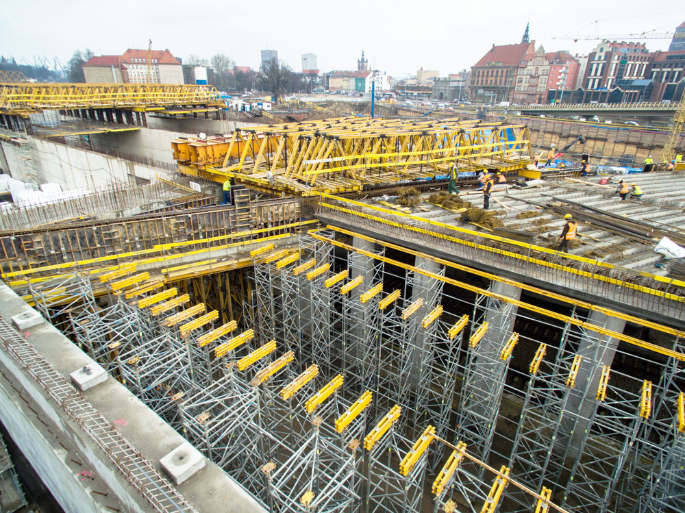 Przez cały okres realizacji inwestycji istotne utrudnienie dla organizacji budowy oraz montażu deskowania stanowi krótki czas przeznaczony na prace monterskie i ciesielskie, prowadzone bezpośrednio na torach. Ich sprawny przebieg umożliwiały platformy robocze oraz schodnie BRIO.