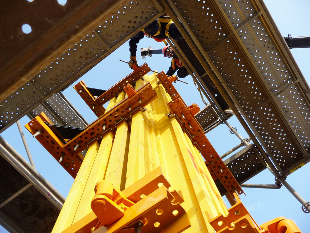 W celu wykonania zbrojenia oraz montażu i demontażu deskowań zamontowano pomosty robocze rusztowania BRIO. System zapewniający bezpieczną pracę użytkownika może być przenoszony bez demontażu za pomocą żurawia.