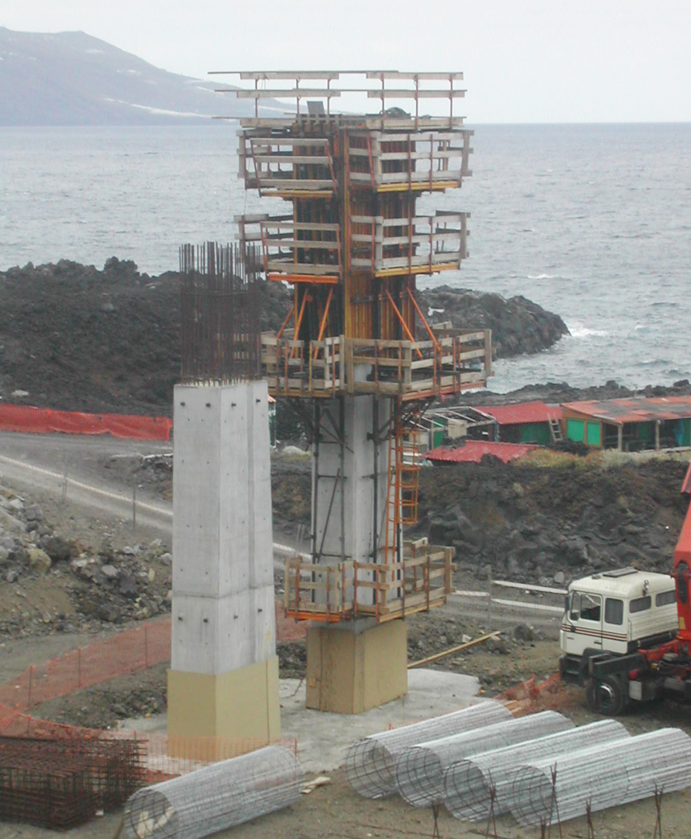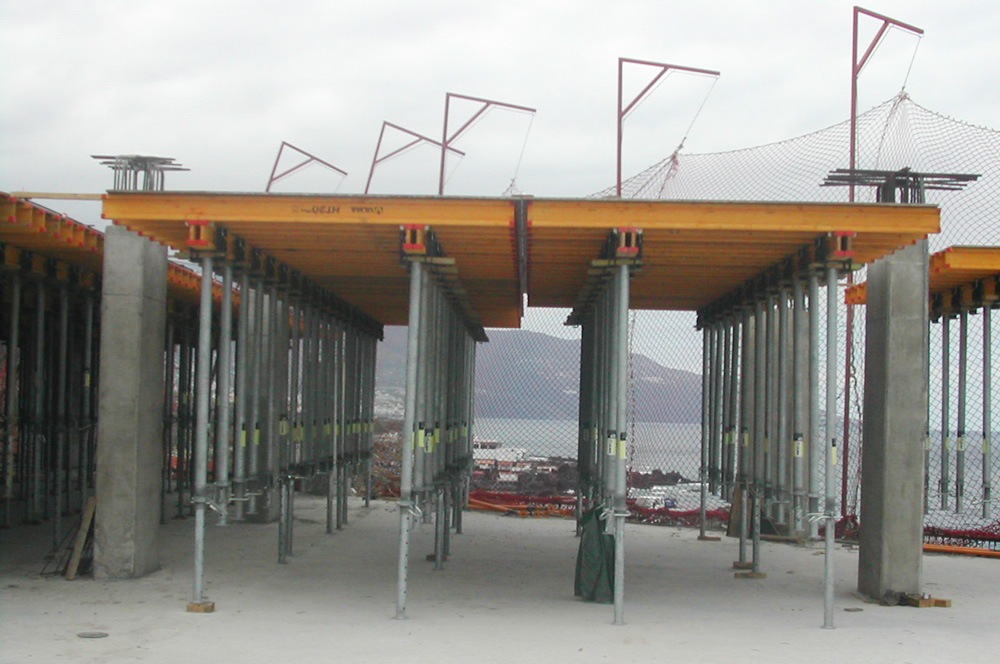 Słupy przy wejściu na lotnisko wykonano z zastosowaniem deskowania pionowego ENKOFORM VMK, opartego na konsolach wznoszących. Systemy umożliwiły zastosowanie elementów standardowych do formowania ścian o nietypowej geometrii.