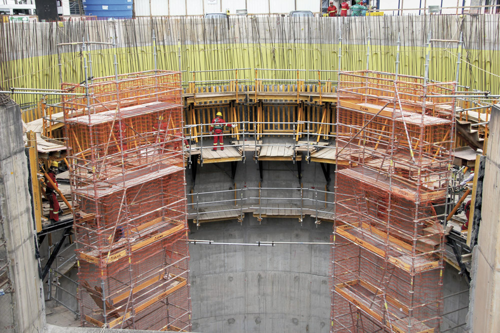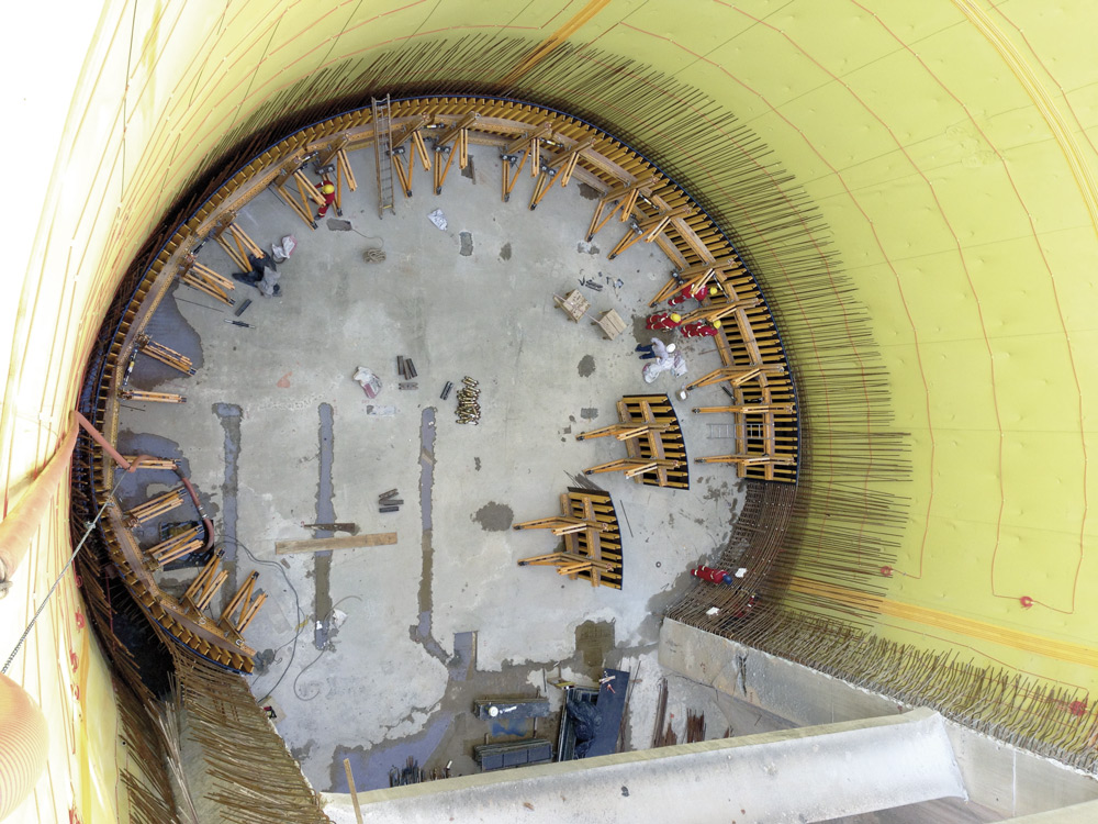 Utrzymanie rotacji deskowania na odpowiednim poziomie oraz wymóg podwyższonej jakości powierzchni betonu dla środkowych filarów tunelu zapewniło użycie deskowania uniwersalnego ENKOFORM VMK na pełną wysokość elementów wynoszącą 5,5 m.