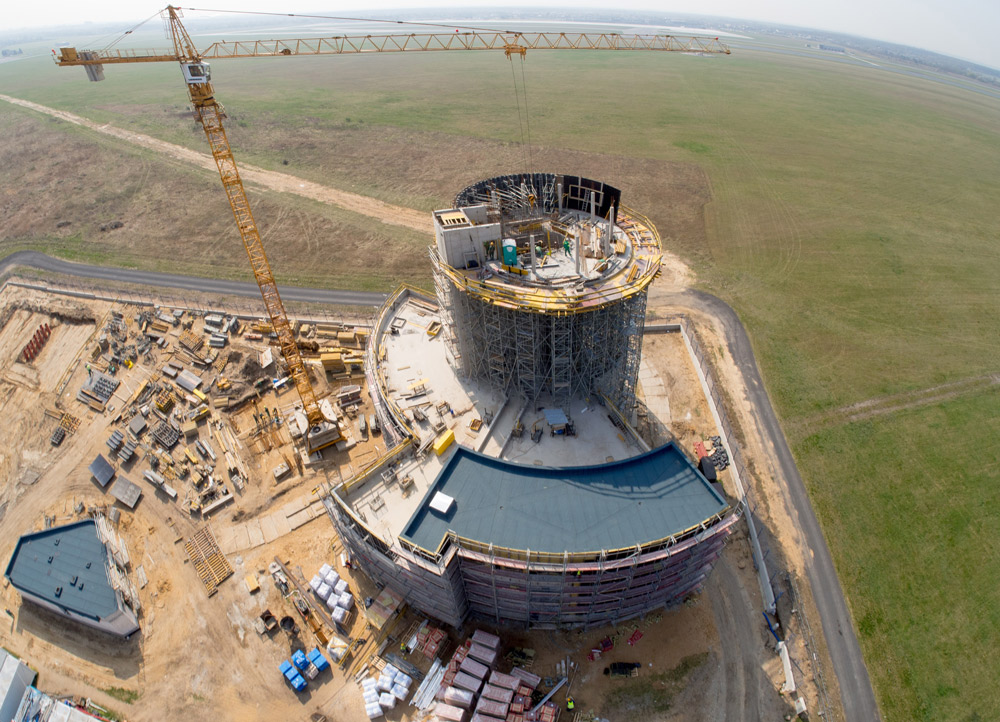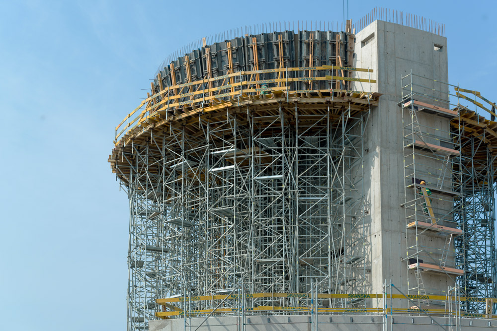 Do wykonania fundamentów wieży wykorzystano lekkie deskowania ścienne COMAIN, natomiast ściany budynku techniczno-administracyjnego oraz ściany proste wieży wzniesiono przy użyciu systemu ORMA.