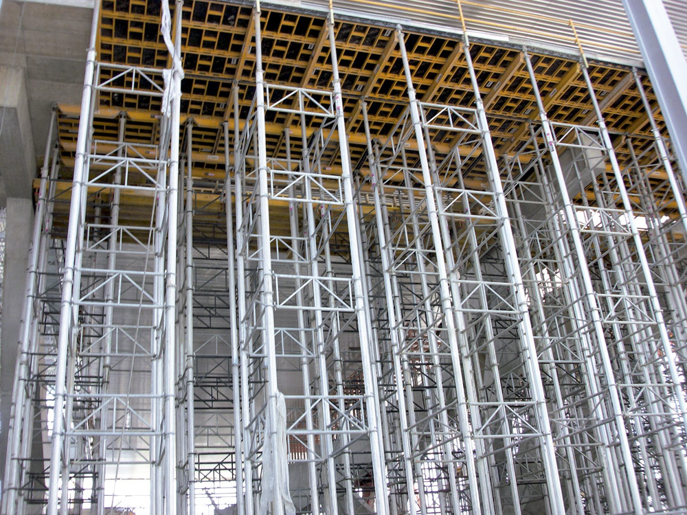 Do podparcia 8-metrowych stropów wykorzystano podpory aluminiowe ALUPROP, stężone między sobą i połączone w wieże. Następnie wieże o kubaturze 100 m3 przenoszono w całości na następny takt, dzięki czemu uzyskano znaczną oszczędność czasu i kosztów związanych z demontażem i ponownym montażem.