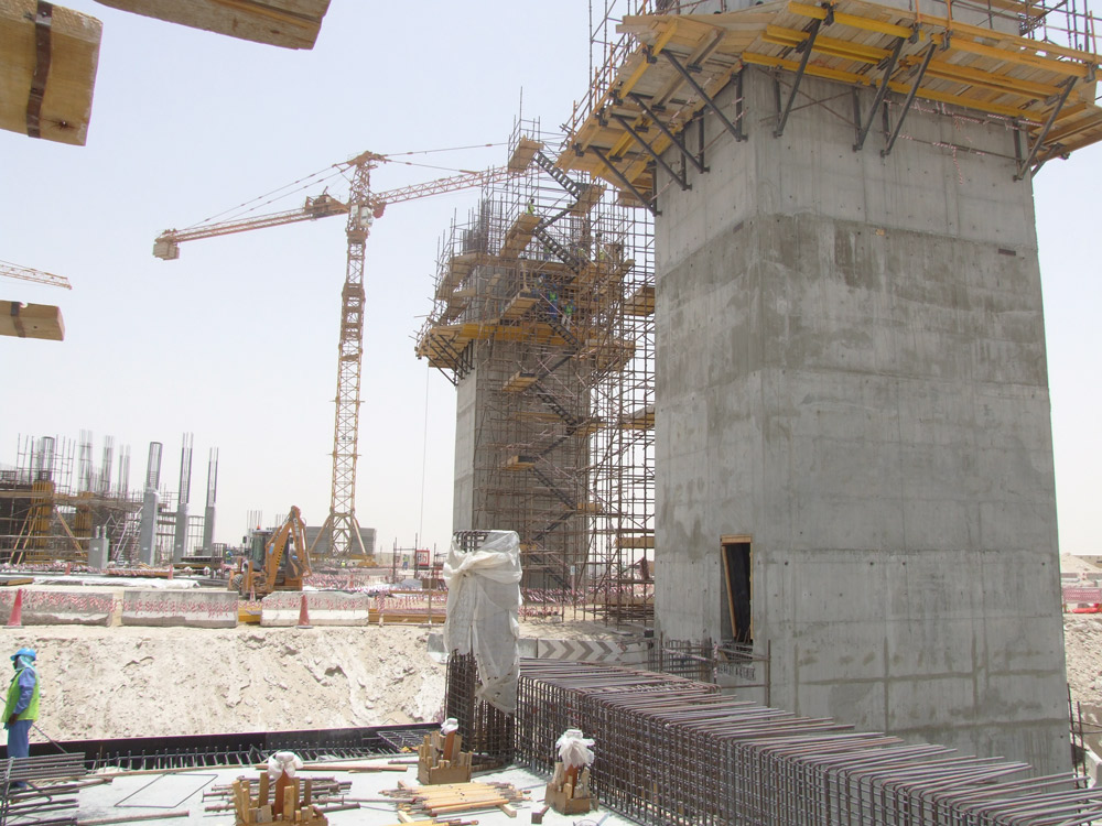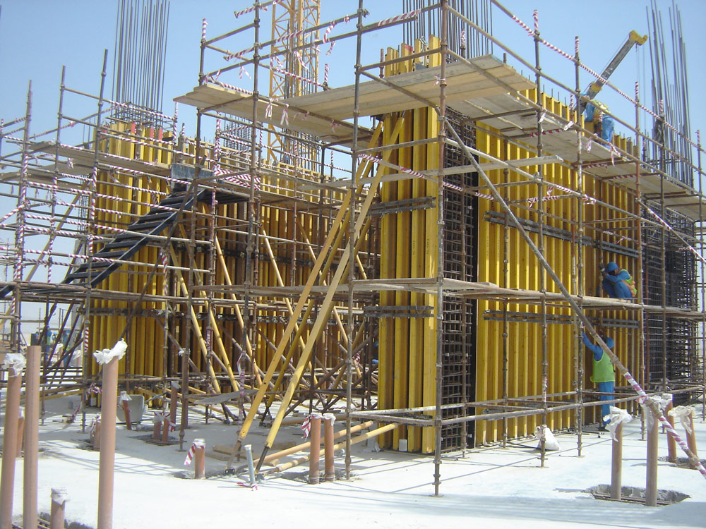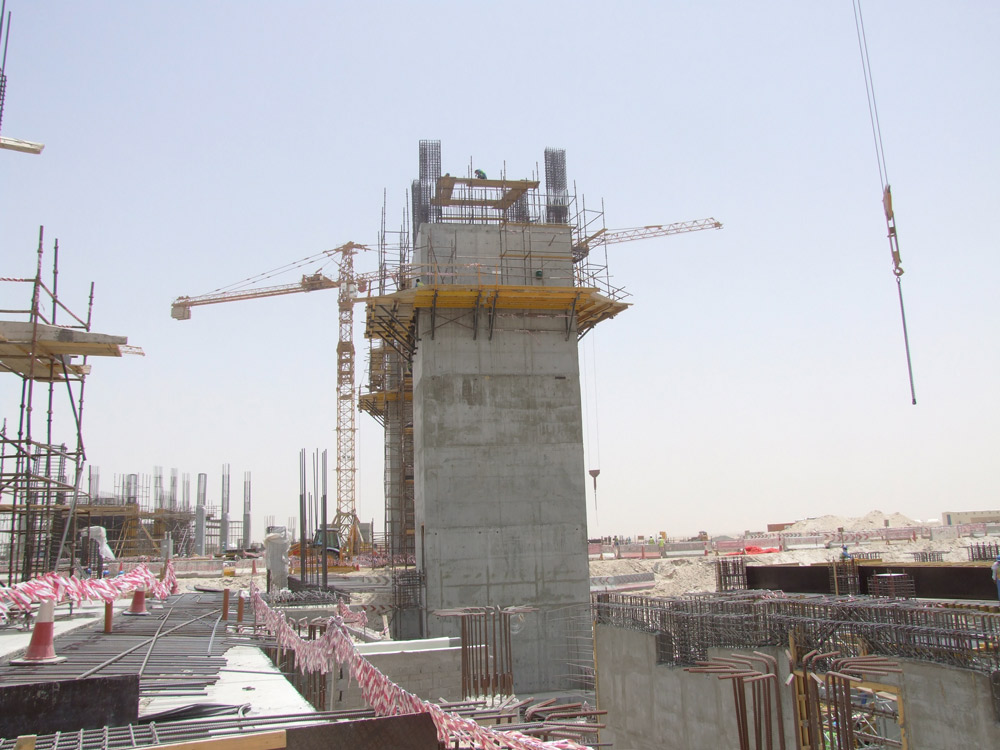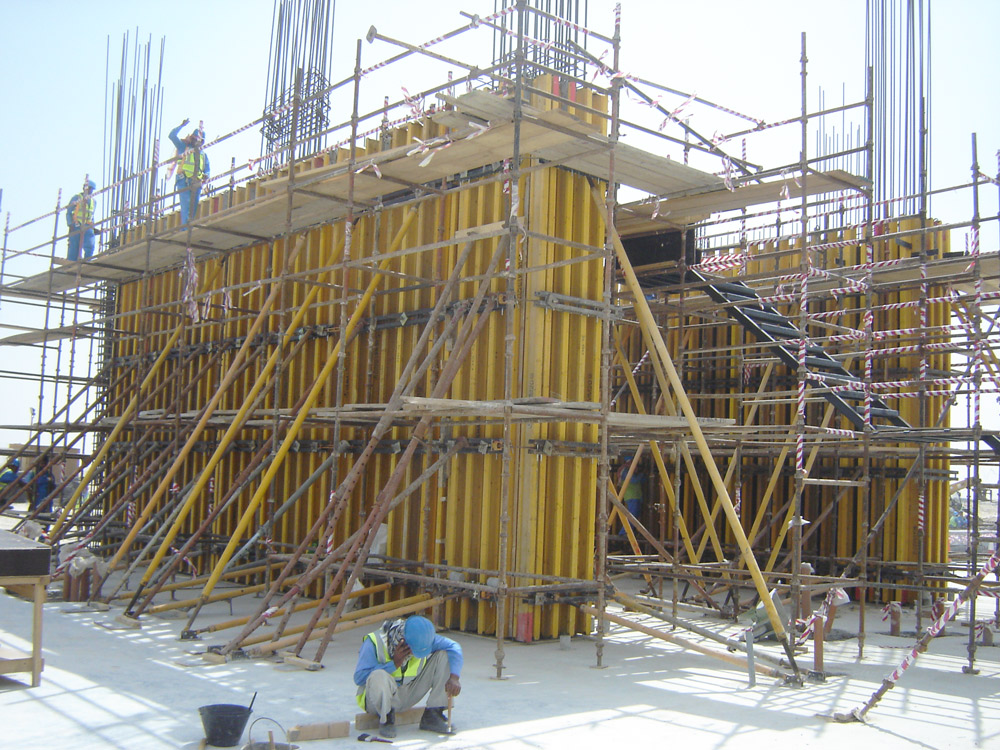 Podczas realizacji tego projektu zastosowano szeroką gamę produktów. Przy wznoszeniu słupów o przekroju 1,20 x 1,20 m i wysokości powyżej 6 m oraz ścian jedno - i dwustronnych o grubości powyżej 50 cm wykorzystano deskowanie uniwersalne ENKOFORM VMK. W przypadku ścian o znacznej wysokości, takich jak trzon obiektu, zastosowano system wznoszący - konsolę CR-250 - z systemowymi elementami bezpieczeństwa.