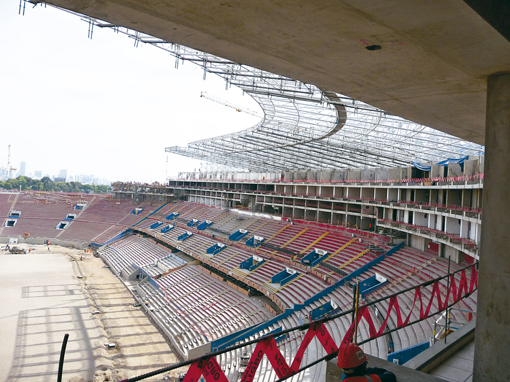Najważniejszym elementem przebudowy było wykonanie stalowej konstrukcji wokół stadionu, zaprojektowanej z aluminiowych blach.