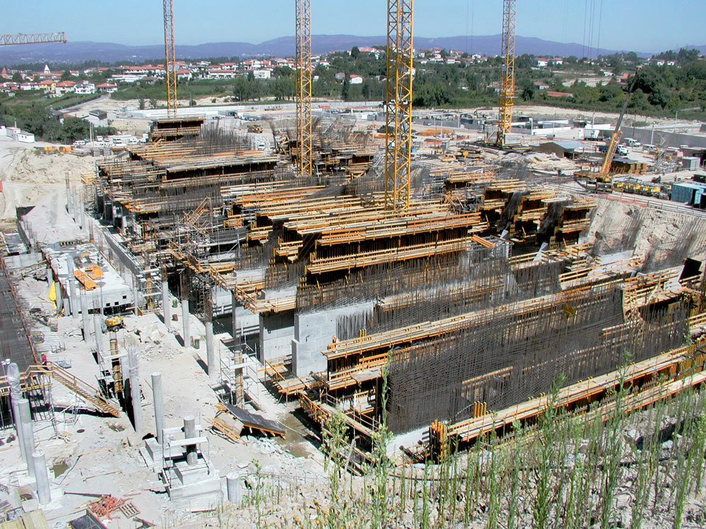 6-metrowy uskok na każdej krawędzi wykonano z zastosowaniem deskowania ENKOFORM HMK zawieszonego na 4 kratownicach. Pomosty wykonano na wieżach, stanowiących podparcie deskowania stropowego na uskoku.