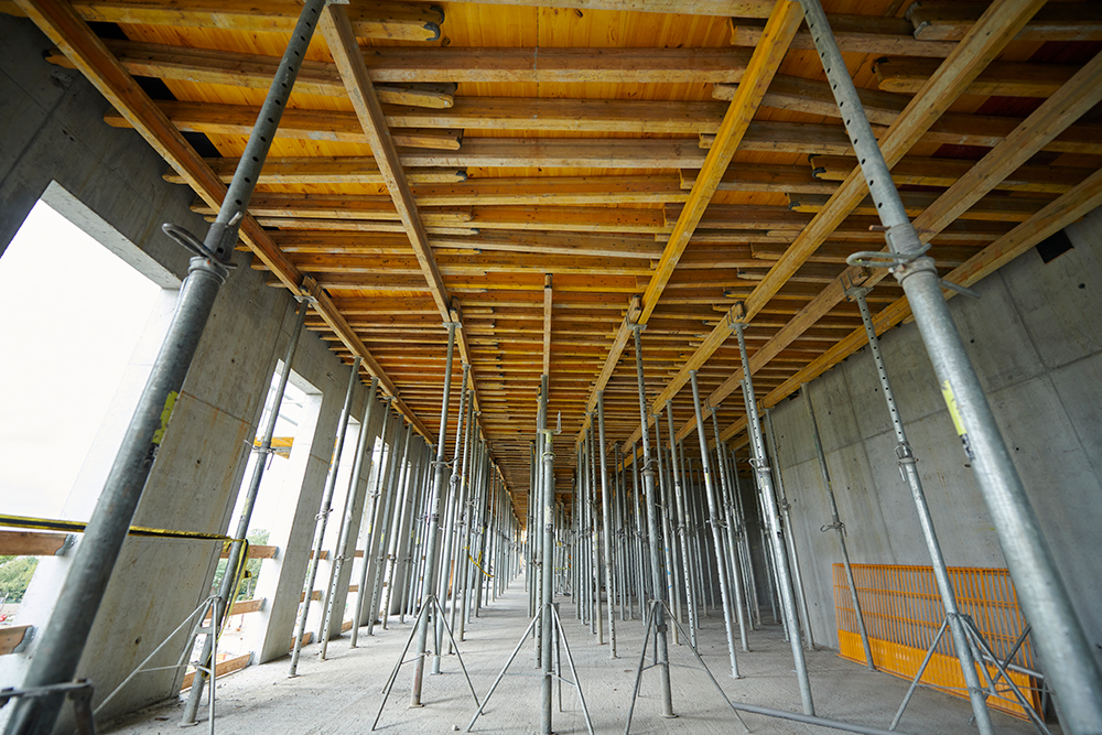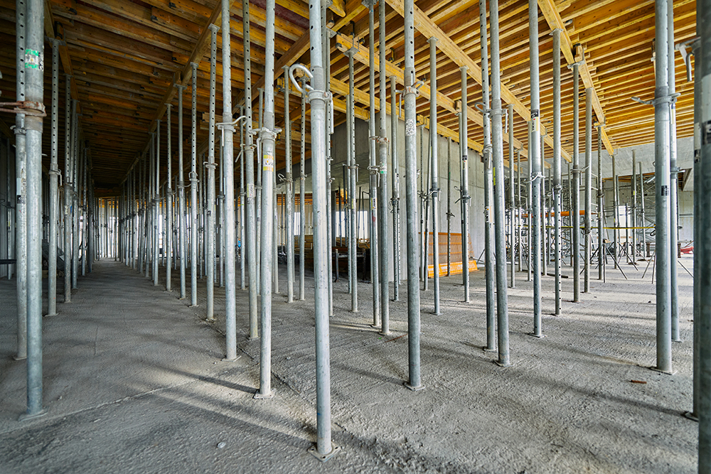 Do realizacji ścian wykorzystano deskowanie ramowe ORMA i deskowanie uniwersalne DSD – rozwiązanie, które pozwoliło na uzyskanie najwyższej jakości betonu architektonicznego. Ściany łukowe zrealizowano przy użyciu deskowania radialnego BIRA, a w przypadku realizacji wysokich ścian sal koncertowych zastosowano pomosty BE z możliwością pionowania deskowania o podest. Stropy wykonano z wykorzystaniem wież T-60 oraz rusztu DSD/VM. Posadowienie wież T-60 przy schodkowej konstrukcji trybun sal koncertowych ułatwiło zastosowanie uniwersalnego systemu MK.