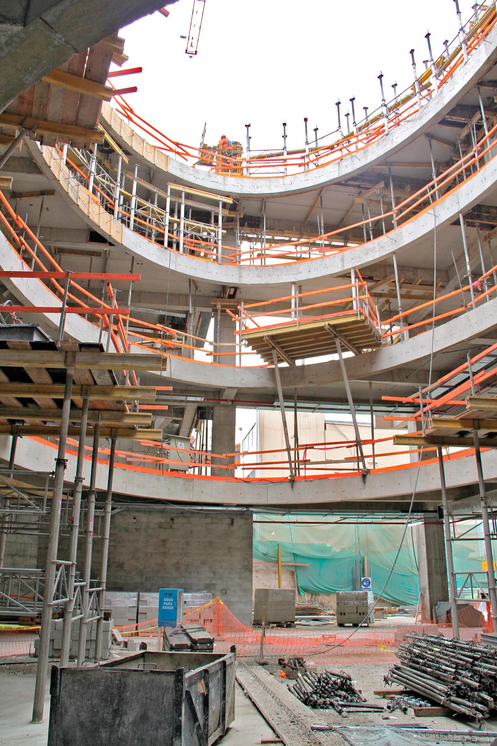Firma ULMA dostarczyła także rusztowanie modułowe BRIO, które posłużyło do wykonania schodni do komunikacji pionowej oraz wież podporowych. Deskowanie COMAIN posłużyło do formowania belek, ścian oraz słupów o mniejszych przekrojach.