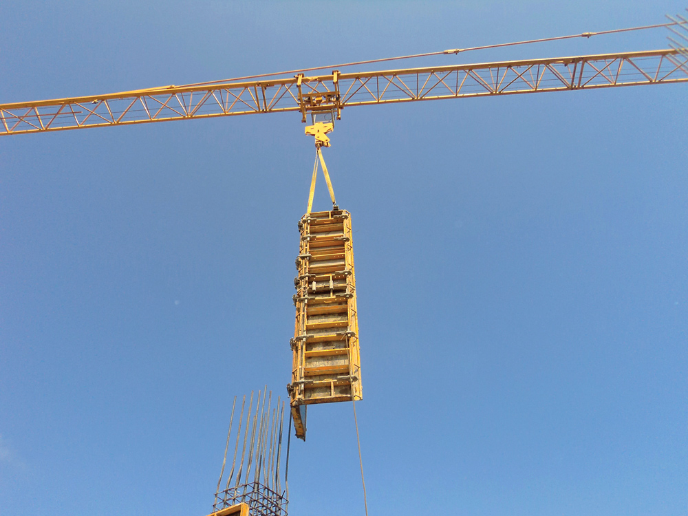 Ściany obiektu wykonano przy użyciu lekkiego deskowania do montażu ręcznego NEVI, niewymagającego dużej ilości dodatkowego osprzętu. Płyty, ze względu na ich niewielką wagę, pracowały w zestawach o wymiarach 8 × 4 m, które przenoszono za pomocą żurawia.