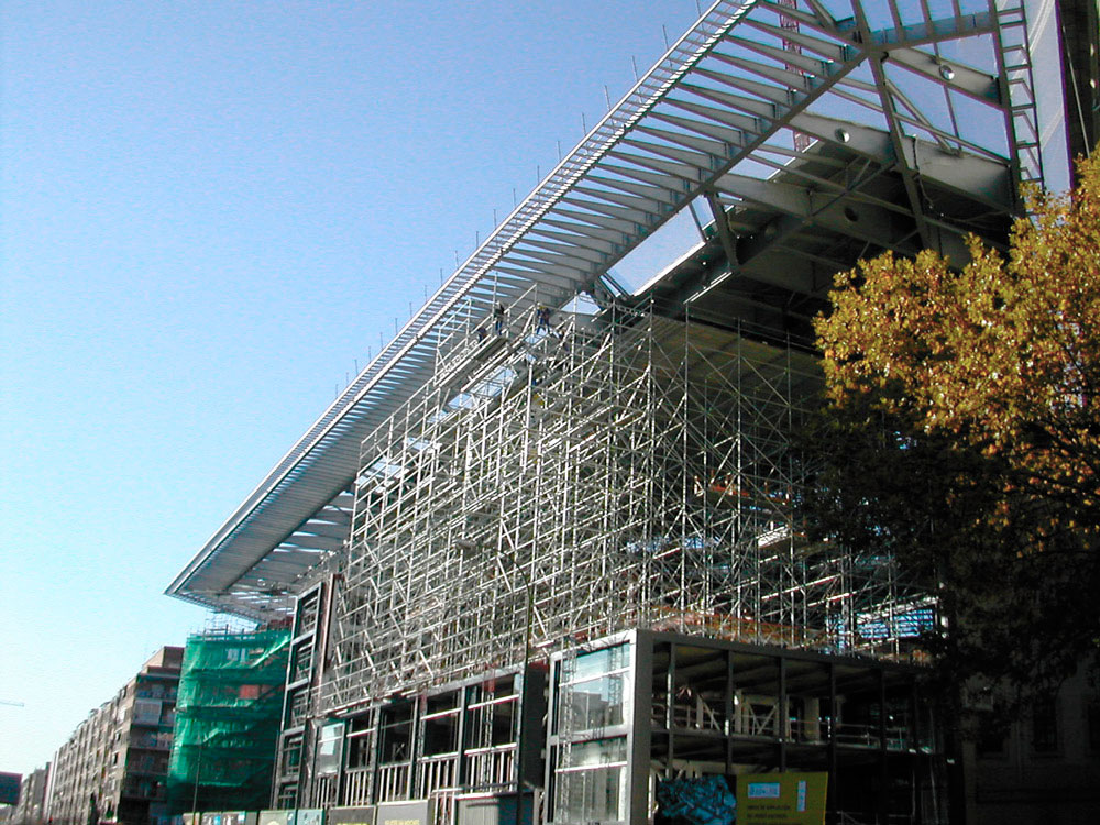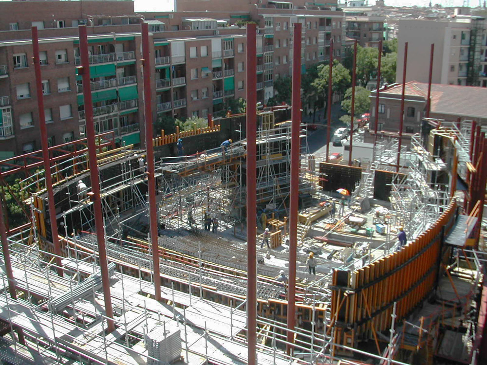 Budynek z salami audytoryjnymi został wykonany w technologii strunobetonu. Dwa wielkie, rozłożone symetrycznie żebra przenoszą obciążenia od audytoriów i sali protokolarnej. Patio powstało po połączeniu żeber z belkami żelbetowymi. Największe wyzwanie w projekcie stanowiło wykonanie zakrzywionych ścian betonowych oraz powierzchni o znacznym nachyleniu. W celu wykonania dachu, który wznosi się na 6 m ponad tarasami budynków, zastosowano specjalne rozwiązanie do wykonania jego 36-metrowego uskoku.