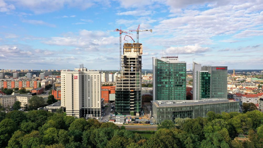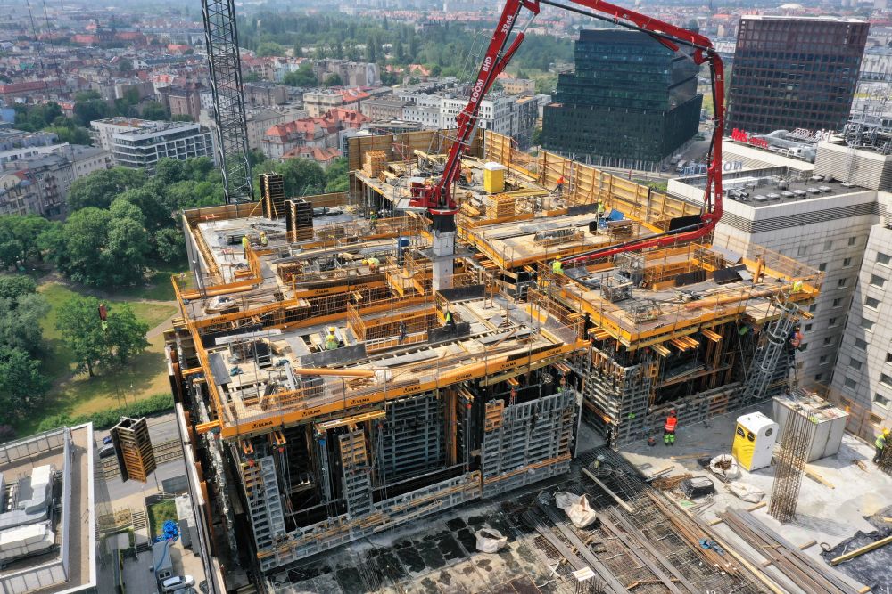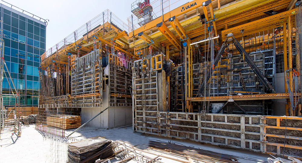 Trzony budynku wykonano z wykorzystaniem deskowania ramowego ORMA z narożnikami samorozformującymi, a stropy zrealizowane zostały przy użyciu aluminiowego deskowania panelowego CC-4. Aby przyspieszyć realizację trzonów i stropów wykorzystano deskowanie samowznoszące ATR. W celu zapewnienia bezpieczeństwa prac na wysokości zastosowano osłony przeciwwiatrowe HWS – wraz z systemem RKS w miejscach, gdzie osłony były mocowane do trzonu budynku, a nie na stropie. Niższe kondygnacje zabezpieczono siatkami SARE. Na budowie wykorzystywano także takie systemy jak MK i BRIO. Dodatkowo wykonane zostały pierwomontaże podestów, rygli i wsporników - głównych elementów w ATR i ram systemu HWS i RKS. W celu ułatwienia montażu konstrukcji deskowania ATR, ULMA udostępniła również modele 3D.