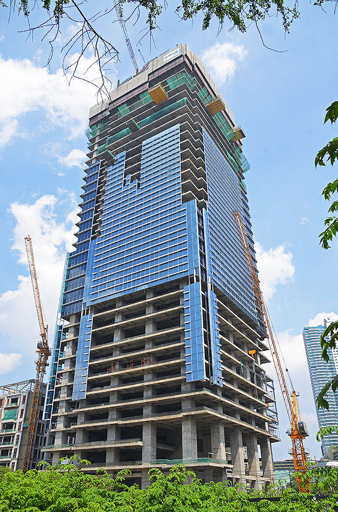 Największe wyzwanie podczas realizacji budynku stanowiła jego wysokość. Do wykonania trzonu konstrukcyjnego ULMA zaproponowała system samowznoszący ATR oraz uniwersalne deskowanie ENKOFORM VMK. Jako system zabezpieczeń wykorzystano osłony przeciwwiatrowe HWS, które dzięki swojej wysokiej adaptacyjności, pomimo iż obrys stropów i ich obwód na całej wysokości budynku zmieniał się trzykrotnie, pozwoliły na dostosowanie do wymagań projektu i zapewnienie bezpieczeństwa prac na budowie. Interesującym aspektem inwestycji były także niewielkiej grubości stropy wyposażone w podciągi – typowa konstrukcja dla państw Azji Południowo-Wschodniej. Do ich realizacji wykorzystano uniwersalne stoliki VR wsparte na podporach SP.