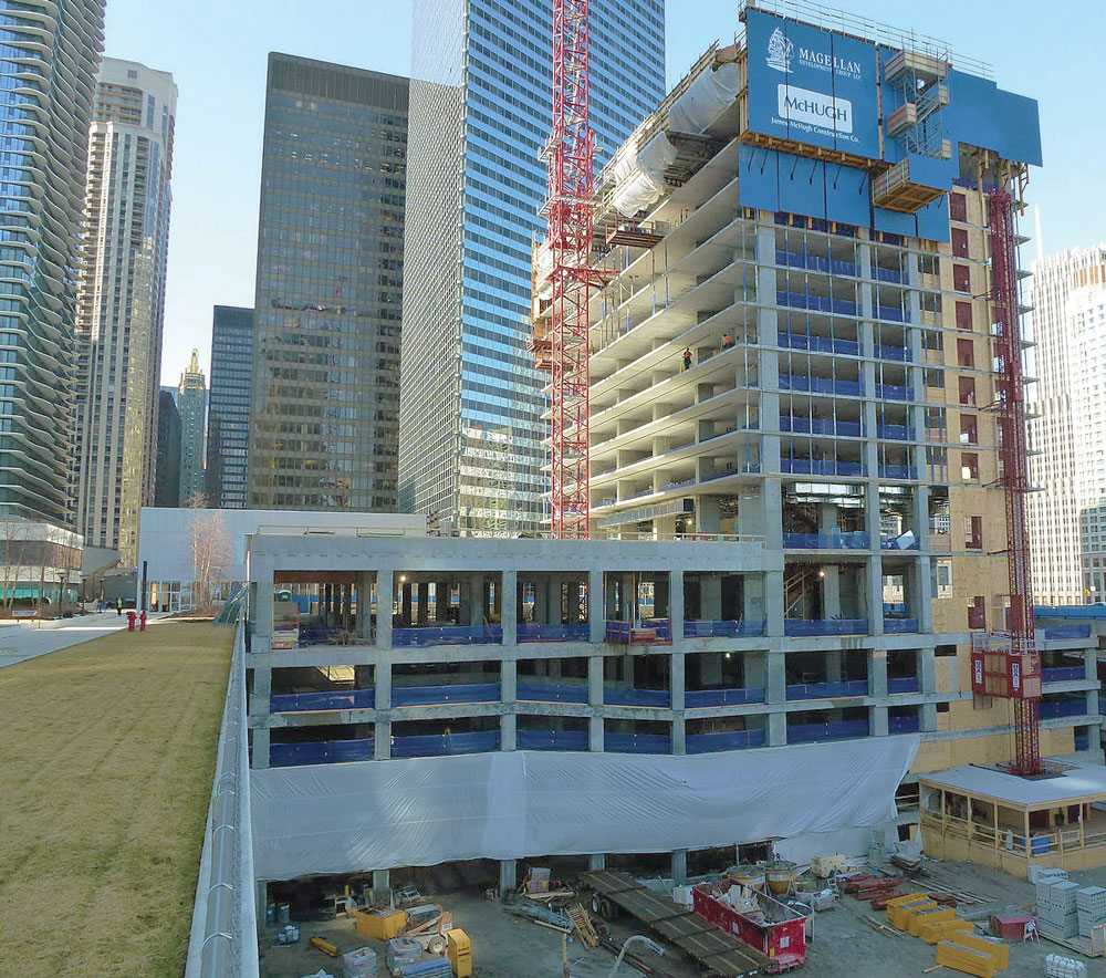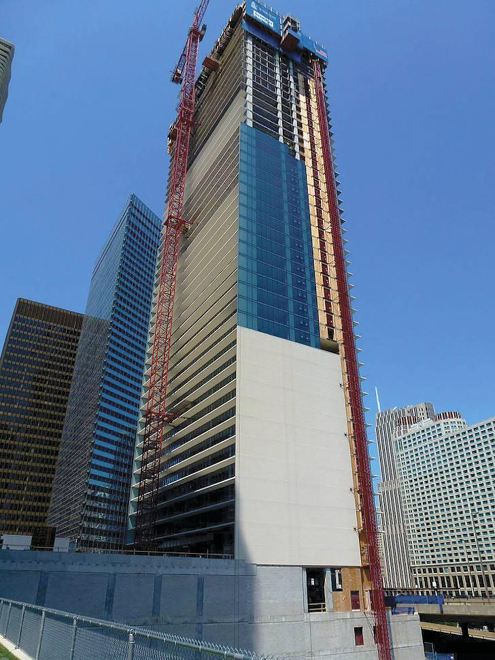 Elementem charakterystycznym obiektu jest elewacja: od strony wschodniej oraz zachodniej zastosowano ścianę osłonową z aluminium i półprzezroczystego, porowatego szkła, natomiast od strony północnej i południowej w budynku znajdują się balkony z widokiem na Chicago i jezioro Michigan.