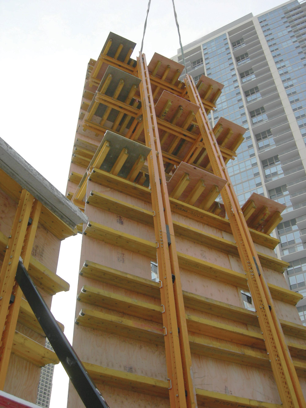 Ściany oraz słupy zrealizowano przy użyciu dwóch rodzajów deskowań ściennych MEGAFORM i MEGALITE. Płyty zwymiarowane są w calach, co pozwoliło na łatwe dopasowanie deskowania do geometrii obiektu.