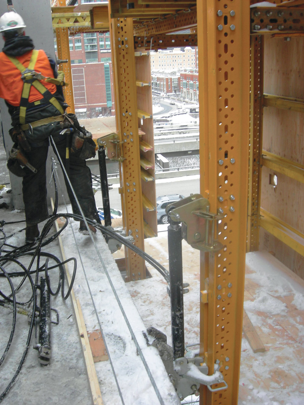 System osłon przeciwwiatrowych HWS zastosowany na obwodzie budynku stanowił zabezpieczenie pracowników przed upadkiem z wysokości oraz niesprzyjającymi warunkami pogodowymi. Do wznoszenia systemu użyto przenośnego układu hydraulicznego.