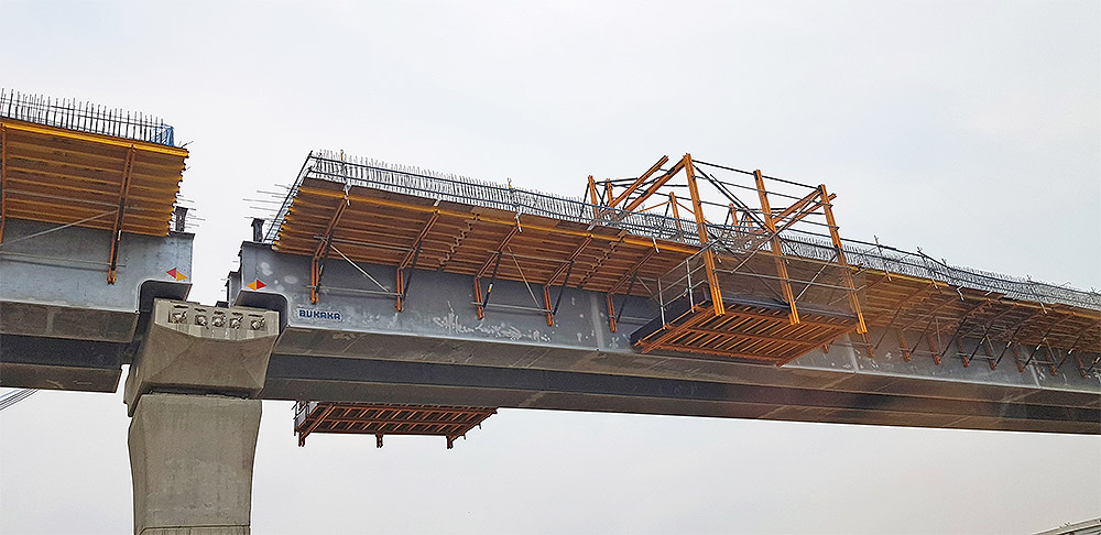 W celu realizacji podpór pośrednich oraz głowic na podporach ULMA dostarczyła na budowę system uniwersalny ENKOFORM VMK. System umożliwił wykonanie skośnych głowic o zaokrąglonych kształtach. Podczas wykonywania drugiego etapu i następnych wykorzystano podesty BMK, co usprawniło pracę na budowie.