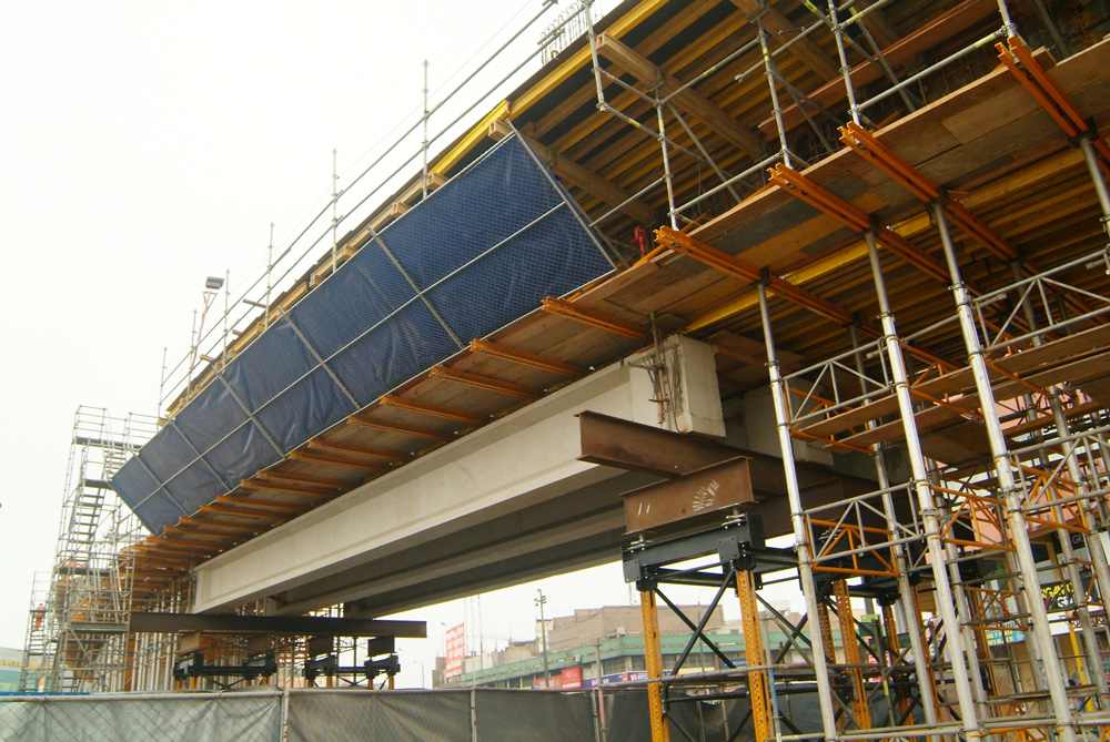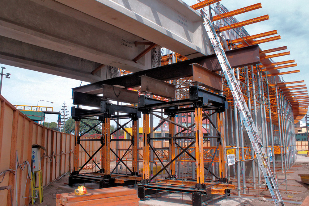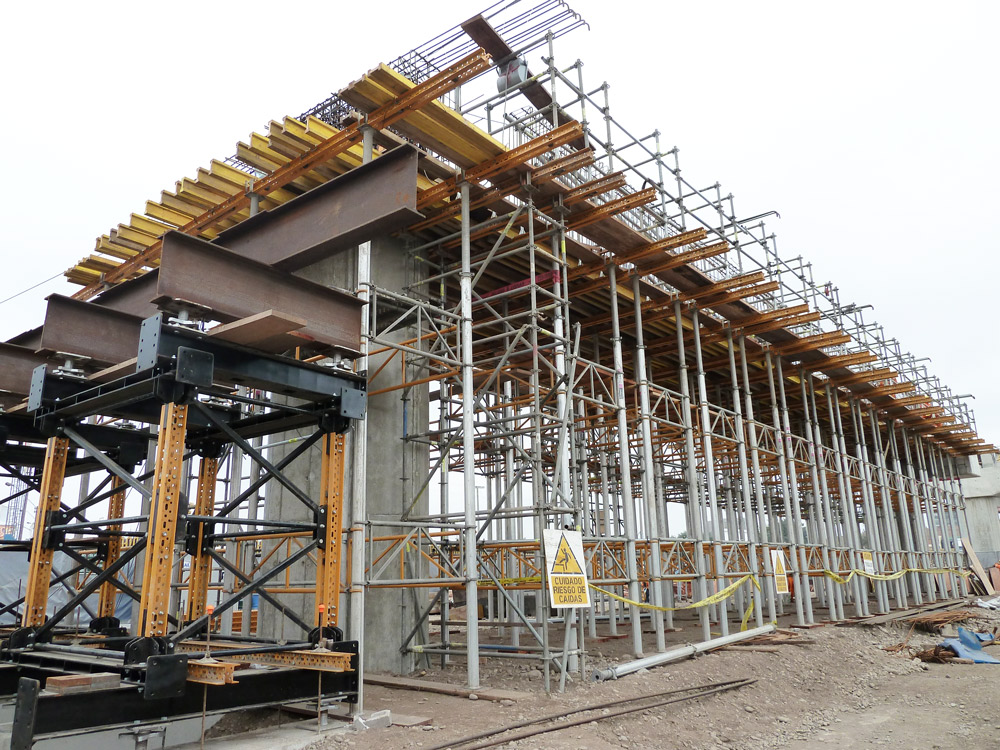 System doskonale sprawdził się przy obciążeniu wysokim parciem betonu, co wynikało z ośmiokątnego przekroju i wykonywanych ponad 7-metrowych podpór. Głowice filarów oraz wystające wsporniki formowano przy użyciu deskowania uniwersalnego HMK wypartego na podporach ALUPROP. Podpory ALUPROP znalazły również zastosowanie razem z deskowaniami COMAIN i NEVI podczas wykonywania żebra oraz płyty jezdnej ustroju nośnego konstrukcji estakady.