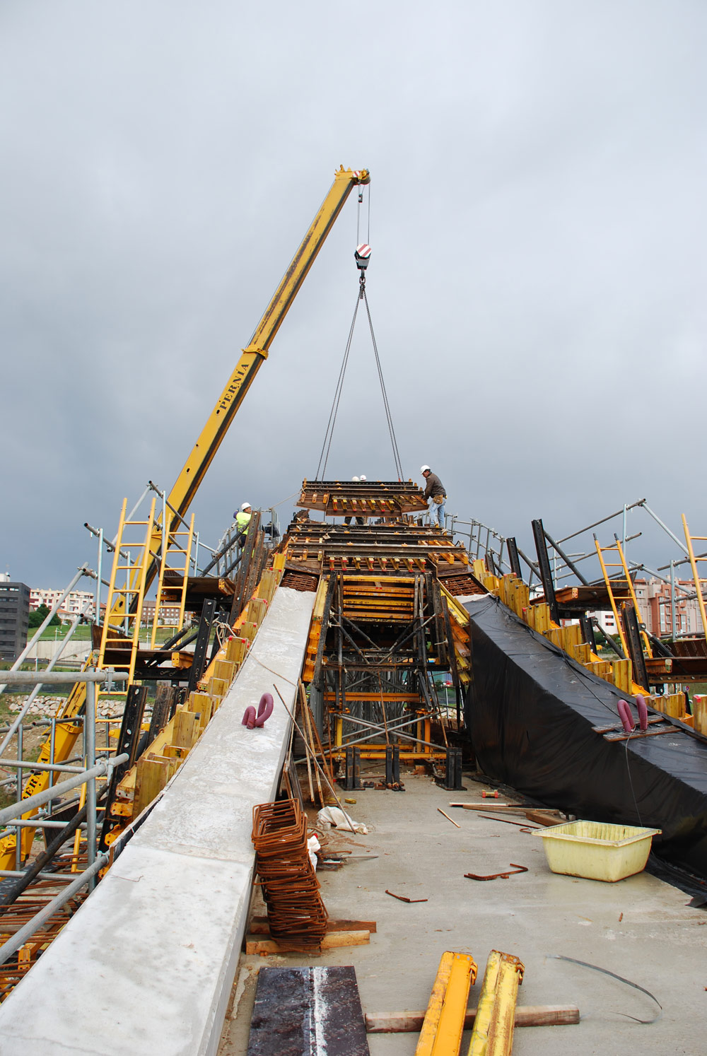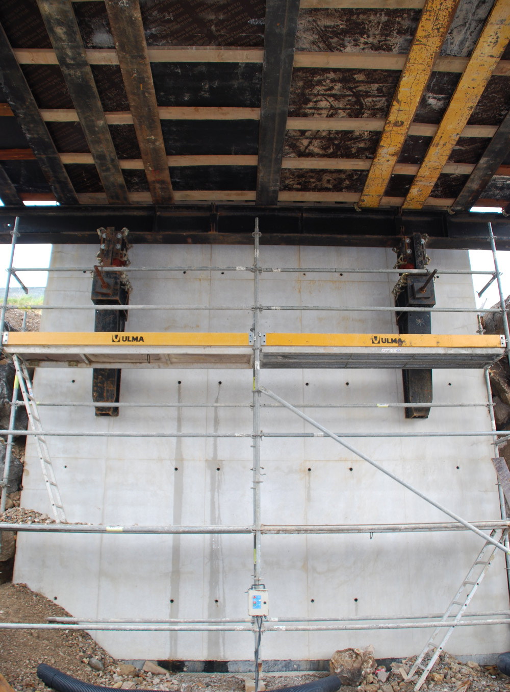 Deskowanie ustroju nośnego oparto w części lżejszej na wieżach OC, a w cięższej na wieżach T-500. Do podparcia deskowania w strefie przyczółków zastosowano wsporniki MT. Przyczółki wykonano za pomocą deskowania pionowego ORMA.