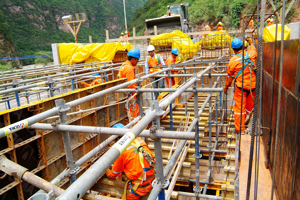 Najważniejszym etapem inwestycji była budowa konstrukcji wsporczej deskowania. Poszczególne odcinki deskowania o długości 15 m i szerokości 2,6 m ustawiano na fundamentach tymczasowych, wykonanych w nurcie rzeki. Przygotowane fundamenty miały 2,0 m wysokości i 0,4 m szerokości.