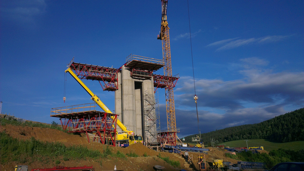 Realizacja filarów mostowych na obiekcie w ciągu 11,2 kilometrowego odcinka Transeuropejskiej Sieci Drogowej, łączącej krańce kraju autostrady.