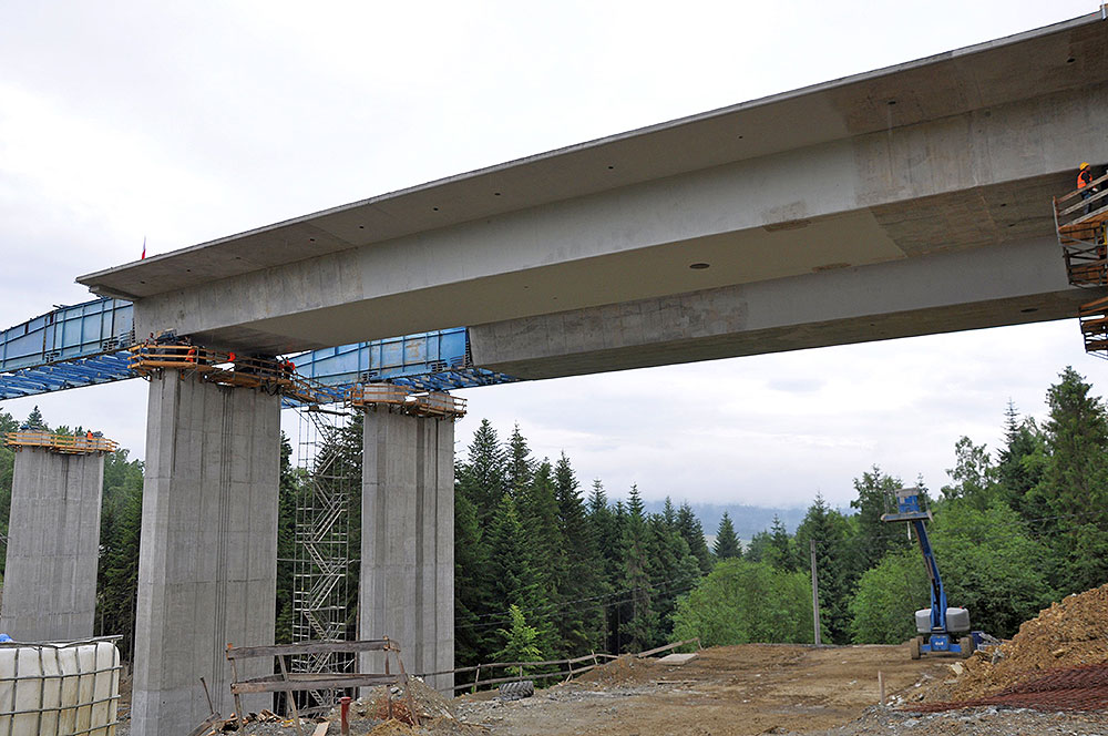 Obiekt 22 powstał w ramach nowo budowanej Zakopianki na odcinku Lubień - Rabka Zdrój. W ramach współpracy z firmą Salini Impregilo na obiekcie nr 22 ULMA dostarczyła kompleksowe rozwiązanie do realizacji obiektu mostowego metodą odcinkowego nasuwania podłużnego. Obiekt został zaprojektowany jako dwunitkowy most siedmioprzęsłowy od długości 285 metrów, o maksymalnej rozpiętości przęsła 44 m. Ustrój nośny został podzielony na 13 segmentów o długości 22 m. Obiekt został oparty na 8 podporach o wysokościach od 4 do 25 m. Realizacja każdego segmentu została podzielona na 3 etapy. W pierwszym wykonywana była płyta denna oraz środniki skrzyni, w drugim – płyta jezdna. Trzeci etap obejmował betonowanie poprzecznic.