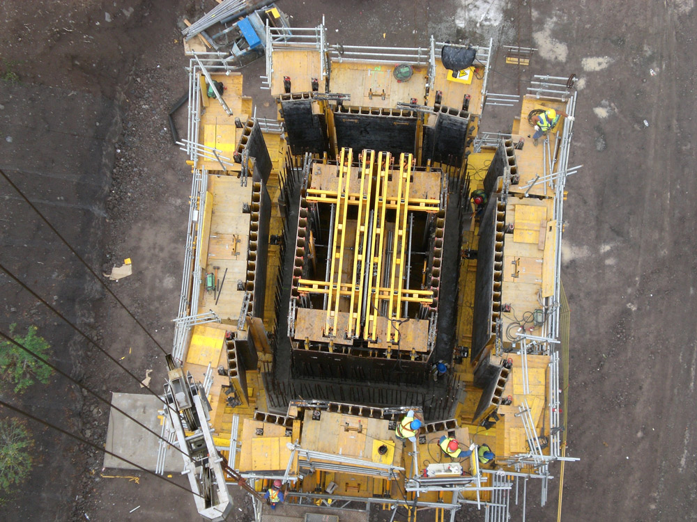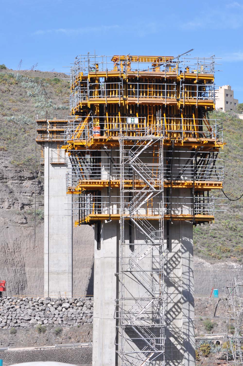 Wiadukt zrealizowano za pomocą systemów wznoszących, wewnątrz i zewnątrz konstrukcji filara. Filary nr 2 i 3 o zmiennym przekroju zrealizowano za pomocą systemu samowznoszącego ATR. Po każdym przestawieniu deskowanie było dostosowywane do zmieniającej się geometrii filara.