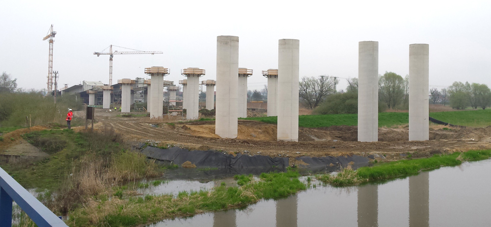 Ustroje nośne obu nitek wiaduktu o długości 746 m i przekrojach skrzynkowych zostały zaprojektowane w łukach o promieniach około 26 m ze stałymi spadkami poprzecznymi i zmiennymi spadkami podłużnymi. Realizację podzielono na 29 etapów. 2 pierwsze i 2 ostanie segmenty będą miały długość około 17 m, pozostałe 25 – około 27 m. Długość wytwórni, tj. stanowiska nasuwania, wynosi około 30 m. W przypadku tej realizacji segmenty są nasuwane za pomocą siłownika kroczącego, umożliwiającego uniesienie i przesuw segmentów ustroju nośnego w skokach co 25 cm.