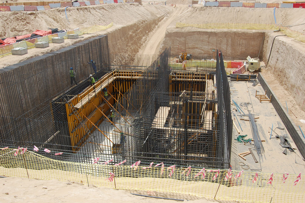 Przepompownia w Jebel Ali w emiracie Dubaju zajmuje obszar o powierzchni 300 m2 . Wysokość ścian obiektu wynosi od 2,2 do 7,3 m. Stropy mają grubość 25 cm.