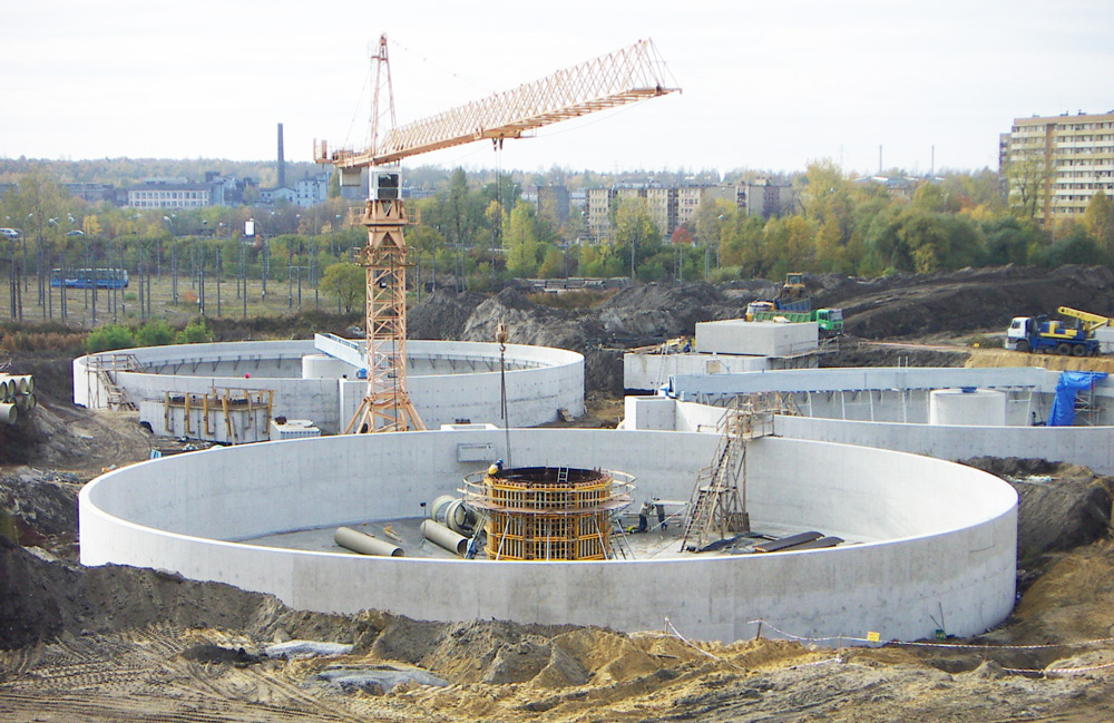 Podczas realizacji pozostałych obiektów: komór i stacji pomp oraz piaskowników zastosowano systemy deskowań pionowych oraz wieże podporowe. Rotacja i ponowne wykorzystanie materiałów pozwoliły na optymalizację procesu budowy.