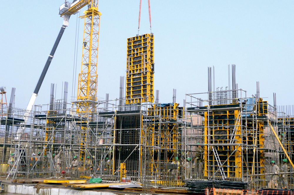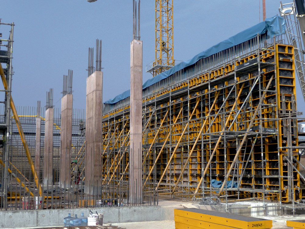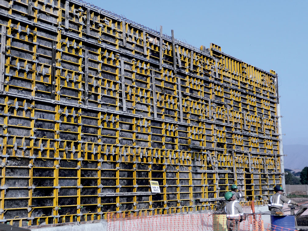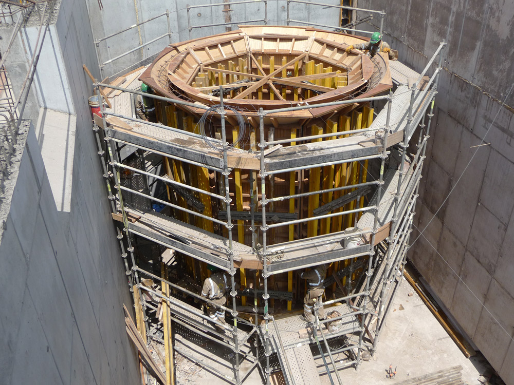 Podczas realizacji ścian jedno- i dwustronnych oraz słupów o przekrojach prostokątnych zastosowano deskowanie ramowe NEVI. System znalazł również zastosowanie przy realizacji wszystkich ścian konstrukcji hydrotechnicznej o wysokości 8,20 m.