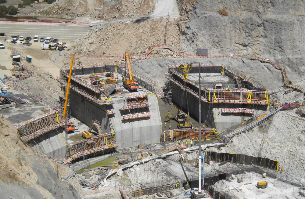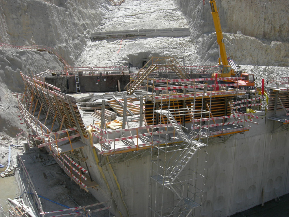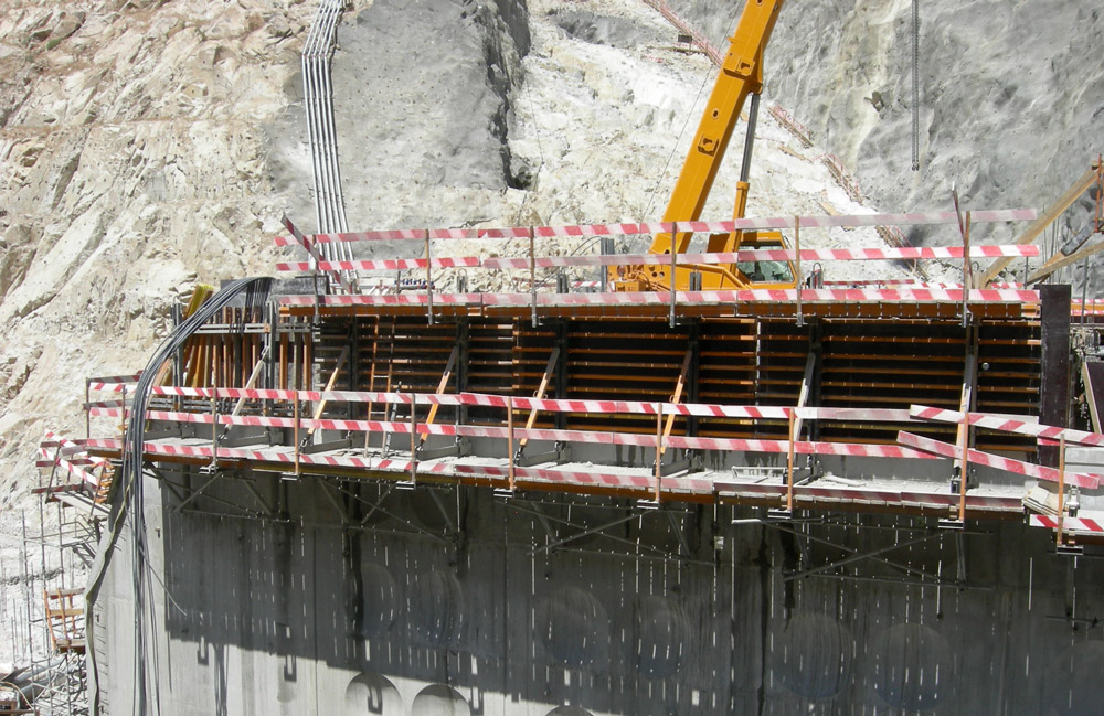 Przy budowie zapory o wysokości 127 m i długości 505 m wykorzystano deskowania pionowe ORMA, BIRA i ENKOFORM VMK. Do wyparcia deskowań pionowych zastosowano jednostronne konsole wznoszące, wieże, rusztowania modułowe i schodnie BRIO. W czasie realizacji ułożono łącznie ponad 860 300 m3 betonu.