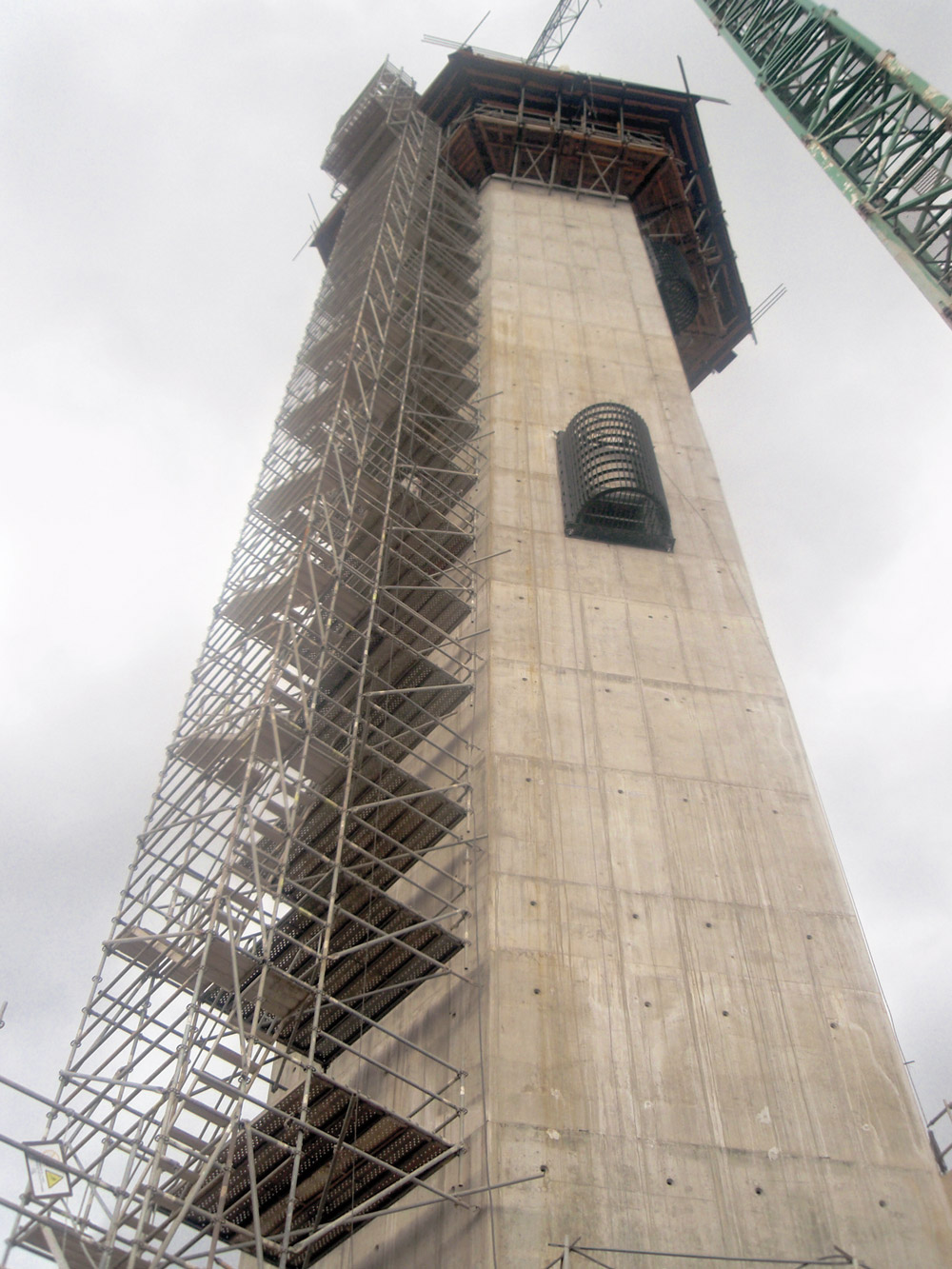 Do realizacji ostatniego odcinka górnej części wieży – ściany radialnej o wysokości 10 m i średnicy 13,5 m – zastosowano deskowanie dźwigarkowe.