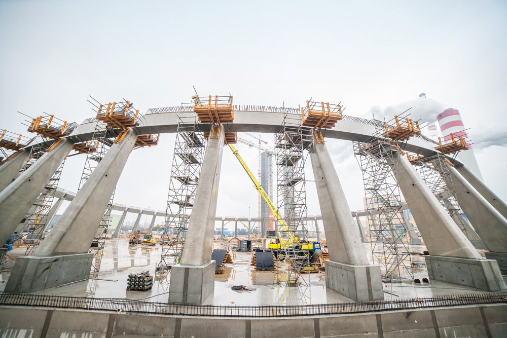 Podczas realizacji instalacji odsiarczania spalin zastosowano deskowanie ramowe PRIMO (do ścian prostych), deskowanie BIRA (do ścian radialnych) oraz system stropowy ENKOFLEX.