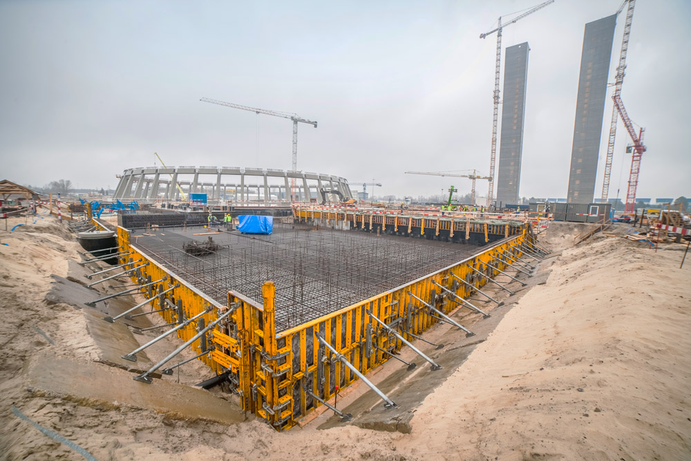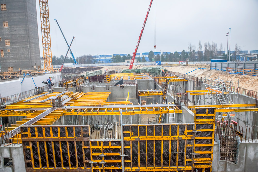 W chwili obecnej na placu budowy powstaje konstrukcja risera z deskowań PRIMO, który będzie miał aż 23 m wysokości.
