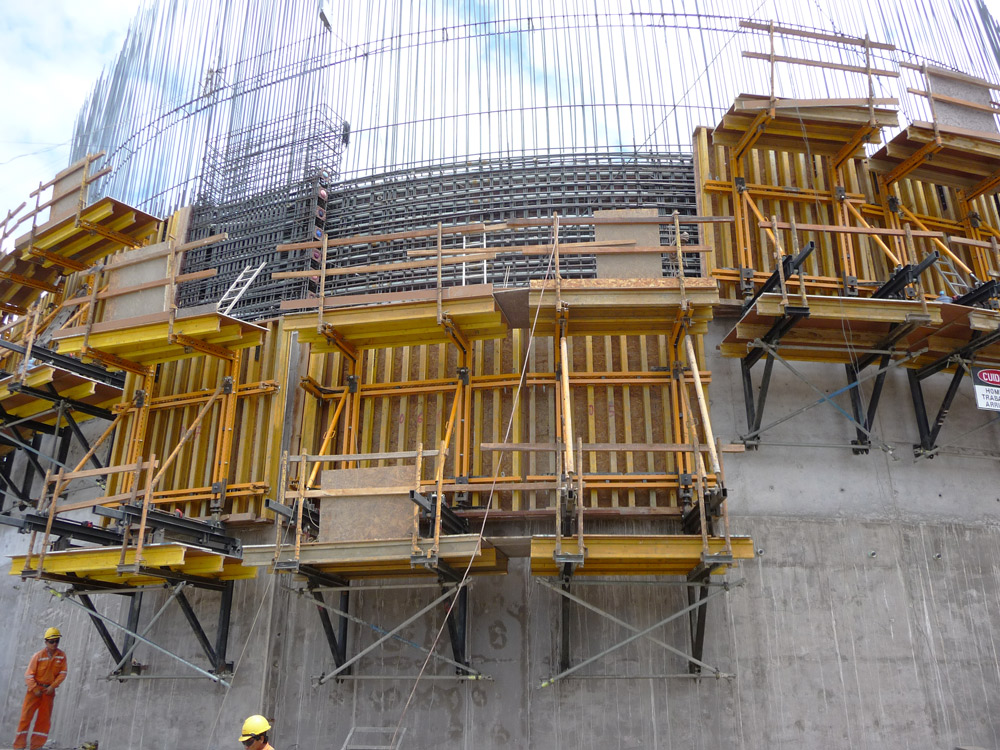 Realizacja wymagała zastosowania deskowania, które zapewniłoby wysoką jakość powierzchni oraz umożliwiłoby dopasowanie krzywizny jego płyt do kształtu silosu. Wykorzystano 72 płyty wykonane na bazie deskowania ENKOFORM VMK o wysokości 3 m i szerokości 2,65 m, które ustawiano na jednostronnych konsolach wznoszących. Betonowanie silosów podzielono na 17 taktów.