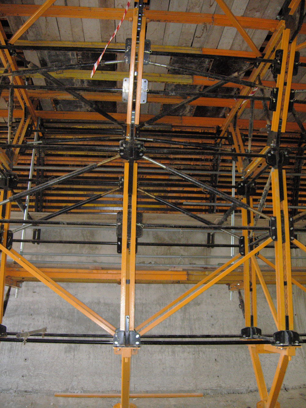 W miejscach sklepienia, gdzie niezbędne było deskowanie dwustronne, elementy zewnętrzne montowano za pomocą żurawia. Sposób montażu umożliwił prawidłowe ustawienie płyt.