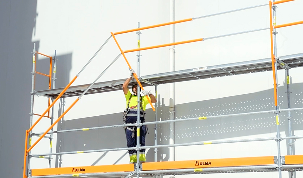 - Balustrada montażowa stanowiąca element ochrony zbiorowej. Montaż z niższego poziomu zabezpiecza przed upadkiem podczas wchodzenia na wyższy poziom. Słupek spełnia wymagania normy EN 795 (urządzenie kotwiczące chroniące przed upadkiem).