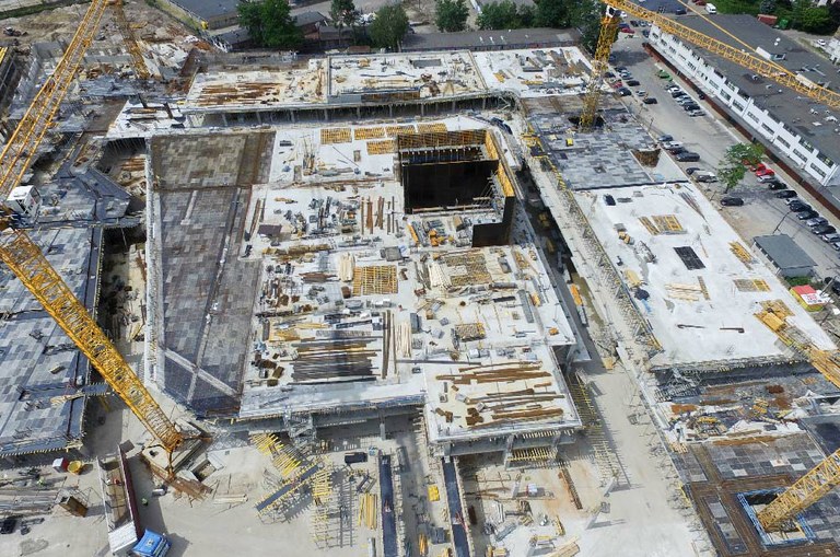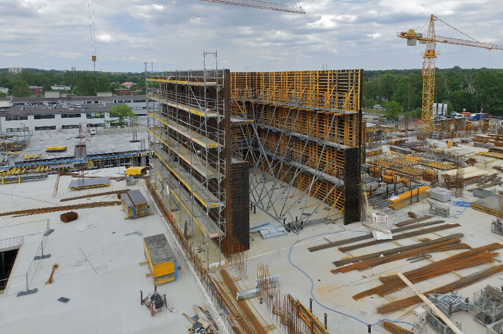 Budynek będzie się składał z dwóch kondygnacji handlowych oraz trzeciej, na której znajdzie się kino i lokale gastronomiczne. Podczas budowy słupów i 13-metrowych ścian kina doskonale sprawdził się system ORMA, natomiast do realizacji stropów wykorzystano deskowanie panelowe CC-4, którego na budowę dostarczono ponad 6000 m2.